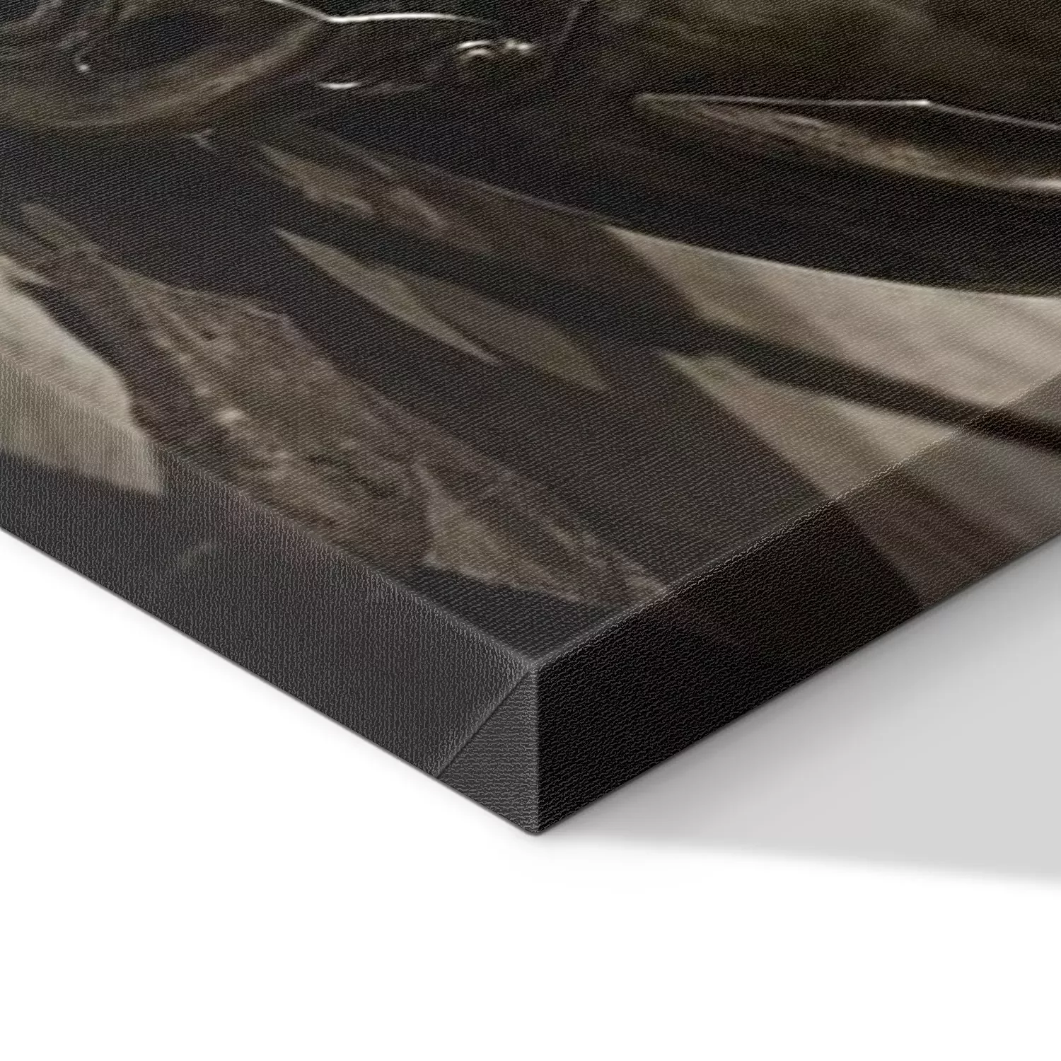 De print wordt aangebracht op hoogwaardig canvas dat op een schildersweefgetouw (spieraam) wordt gespannen. Omdat de print de zijranden bedekt, hoeft het ontwerp niet met een extra kader te worden omlijst. Wij raden ook composities aan die uit meerdere foto's bestaan en zo een coherente compositie vormen.