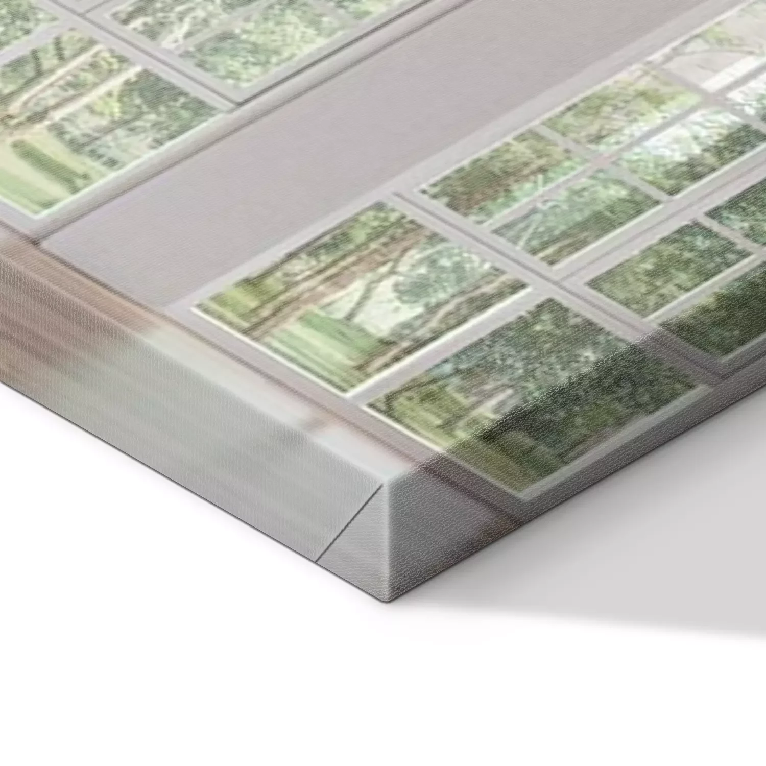 De print wordt aangebracht op hoogwaardig canvas dat op een schildersweefgetouw (spieraam) wordt gespannen. Omdat de print de zijranden bedekt, hoeft het ontwerp niet met een extra kader te worden omlijst. Wij raden ook composities aan die uit meerdere foto's bestaan en zo een coherente compositie vormen.