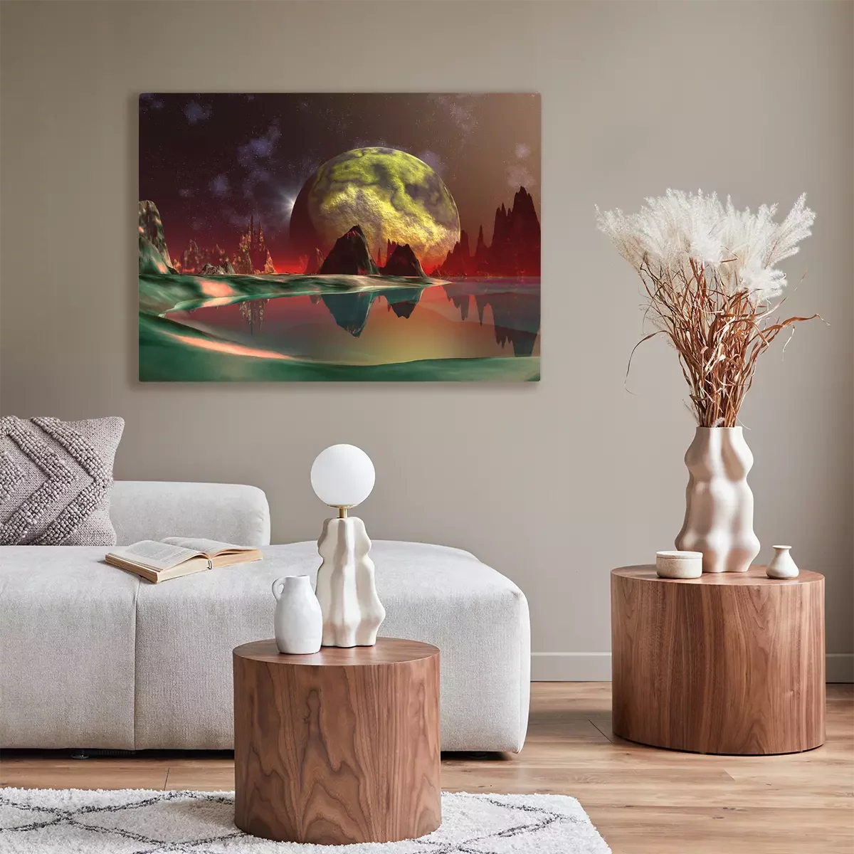 De print wordt aangebracht op hoogwaardig canvas dat op een schildersweefgetouw (spieraam) wordt gespannen. Omdat de print de zijranden bedekt, hoeft het ontwerp niet met een extra kader te worden omlijst. Wij raden ook composities aan die uit meerdere foto's bestaan en zo een coherente compositie vormen.