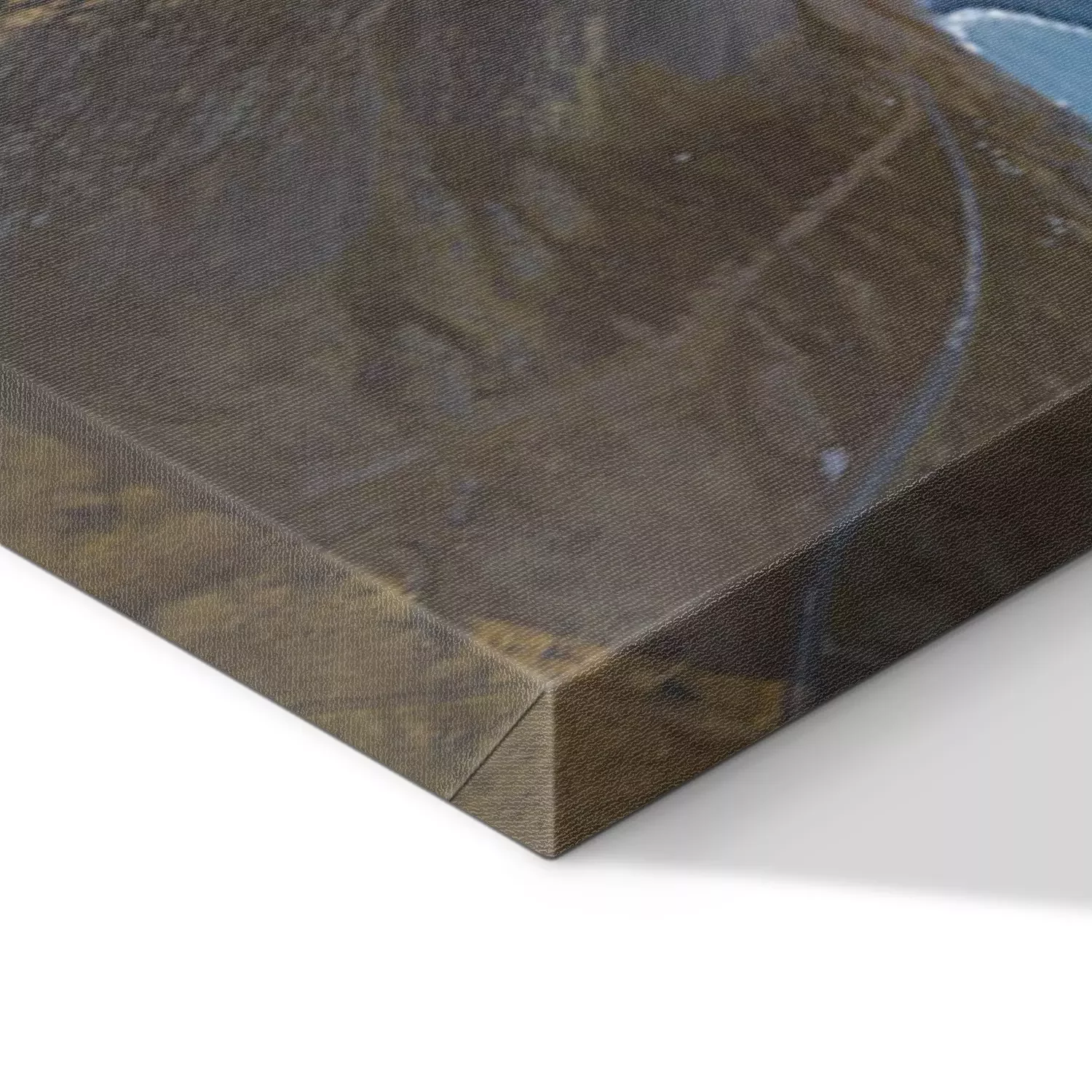 De print wordt aangebracht op hoogwaardig canvas dat op een schildersweefgetouw (spieraam) wordt gespannen. Omdat de print de zijranden bedekt, hoeft het ontwerp niet met een extra kader te worden omlijst. Wij raden ook composities aan die uit meerdere foto's bestaan en zo een coherente compositie vormen.