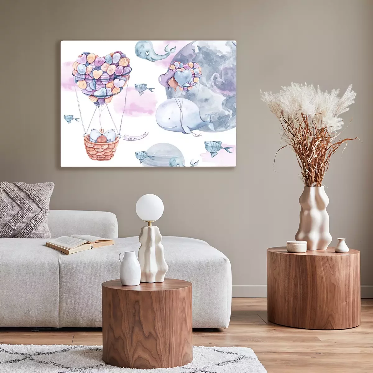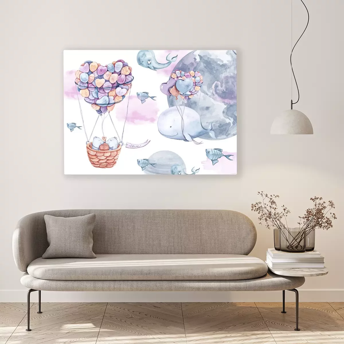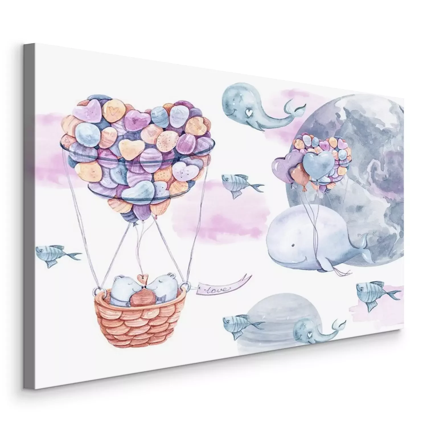 Canvas: Schattige vos en konijntje vliegen in een maanballon