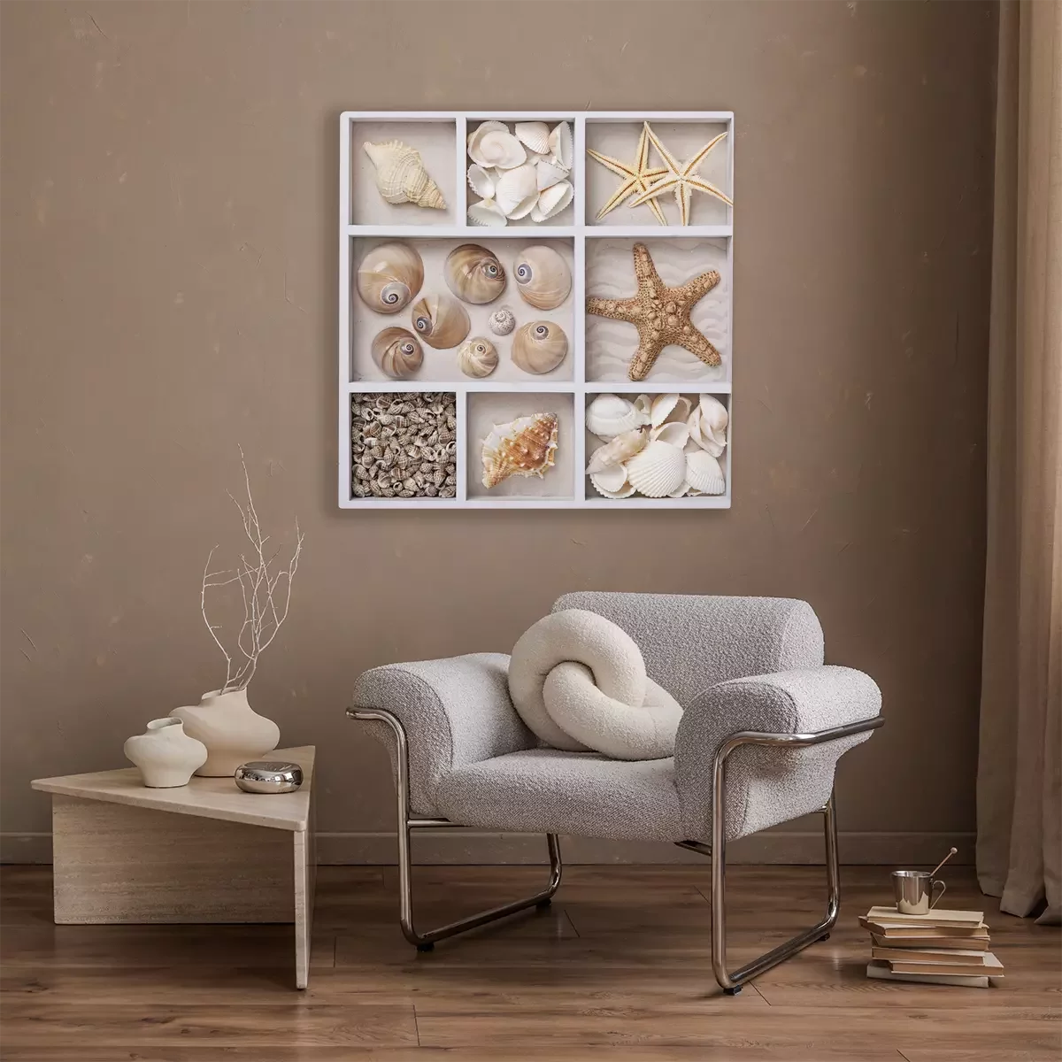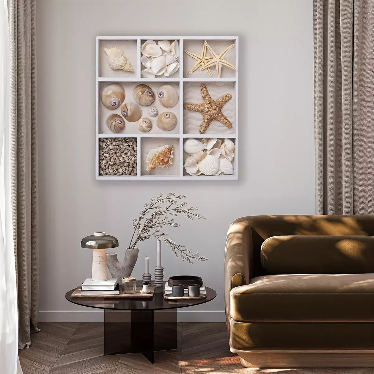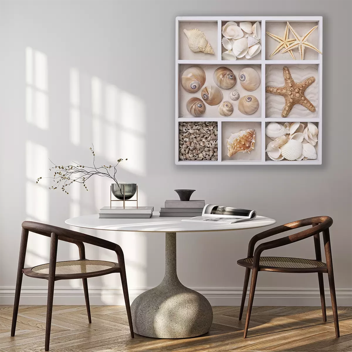 Canvas: Schelpen in een witte doos