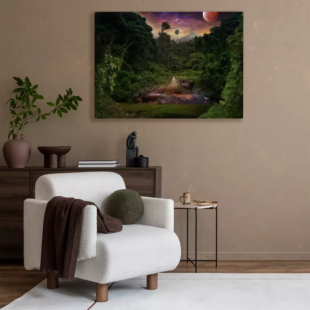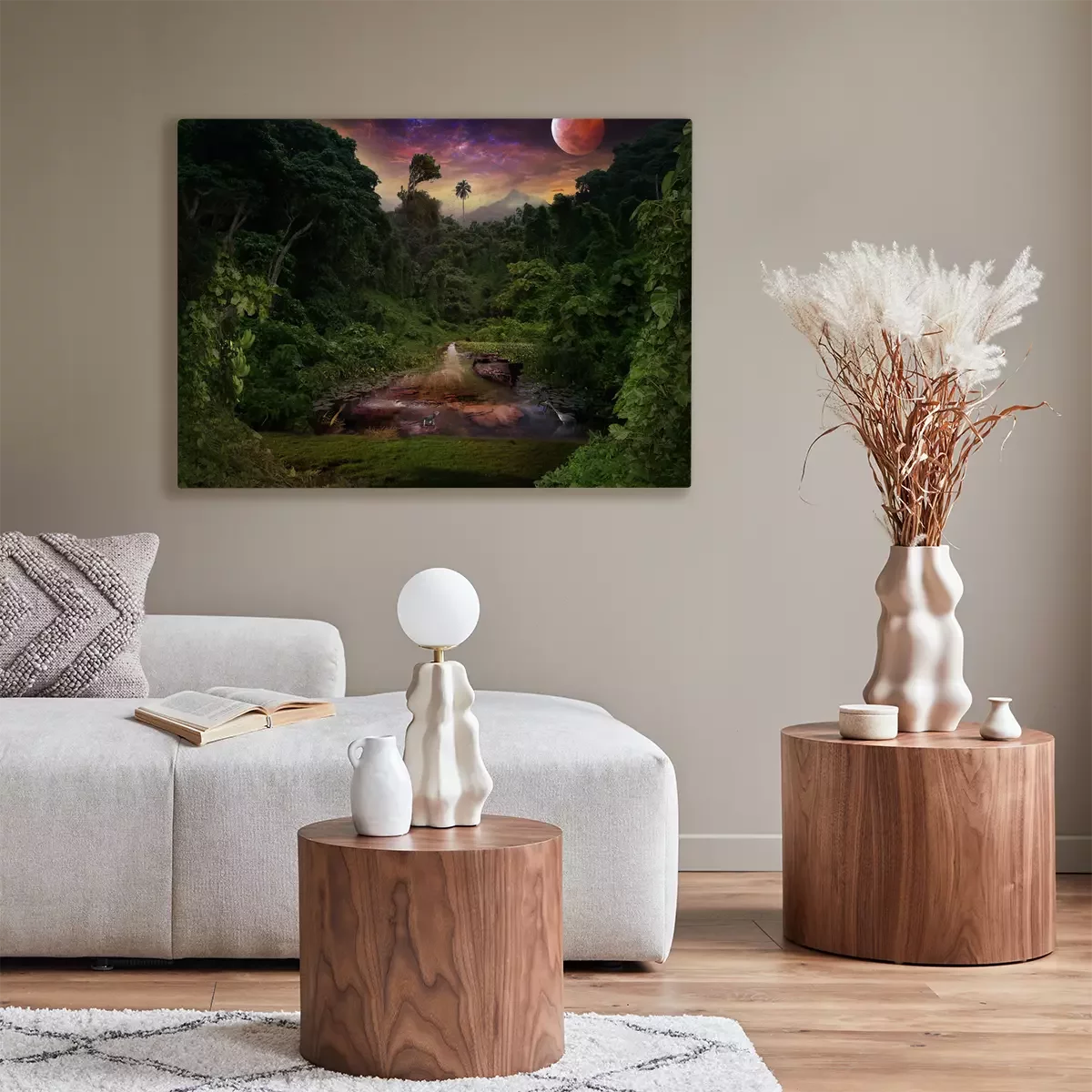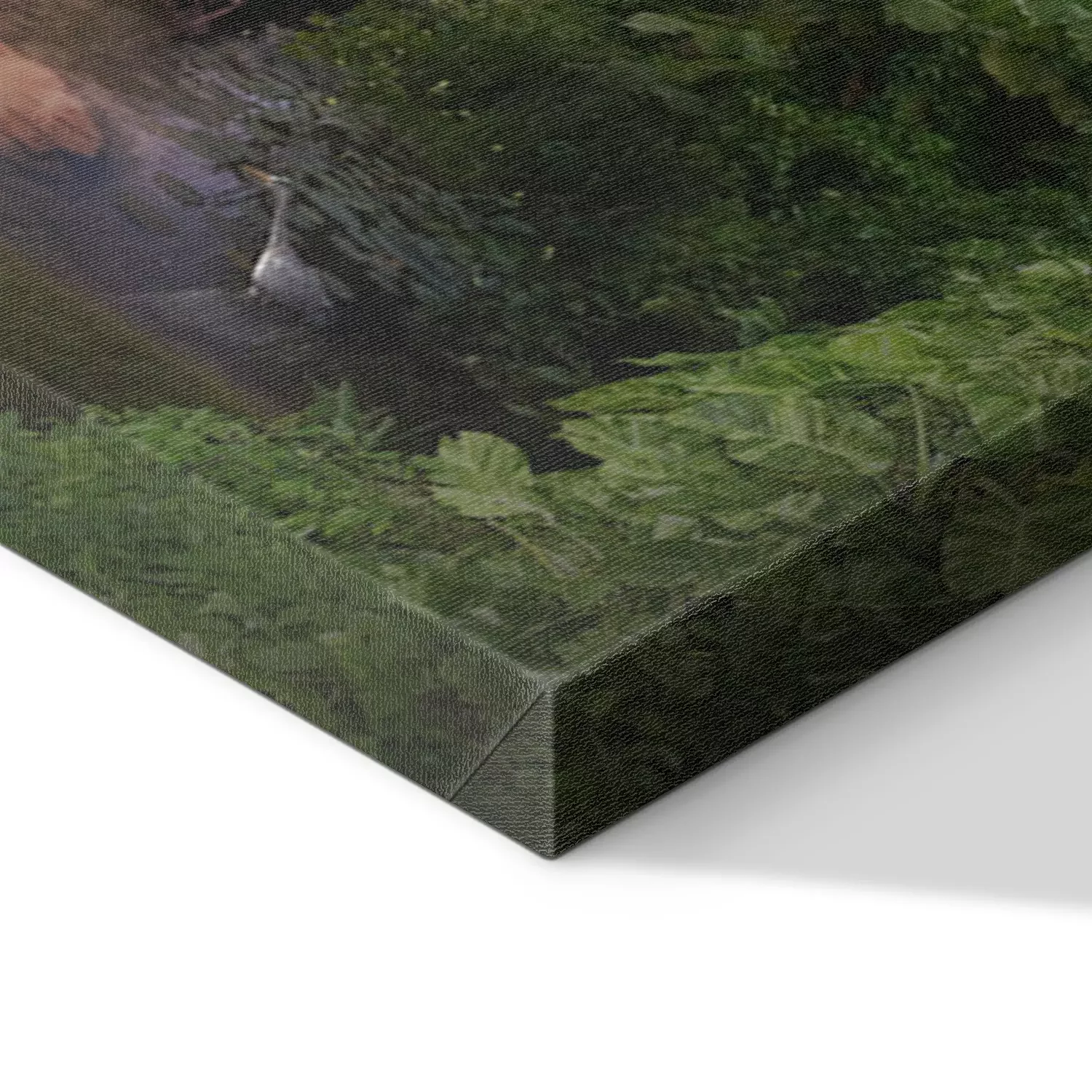 De print wordt aangebracht op hoogwaardig canvas dat op een schildersweefgetouw (spieraam) wordt gespannen. Omdat de print de zijranden bedekt, hoeft het ontwerp niet met een extra kader te worden omlijst. Wij raden ook composities aan die uit meerdere foto's bestaan en zo een coherente compositie vormen.