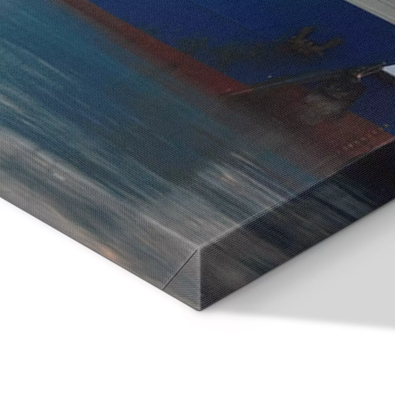 De print wordt aangebracht op hoogwaardig canvas dat op een schildersweefgetouw (spieraam) wordt gespannen. Omdat de print de zijranden bedekt, hoeft het ontwerp niet met een extra kader te worden omlijst. Wij raden ook composities aan die uit meerdere foto's bestaan en zo een coherente compositie vormen.