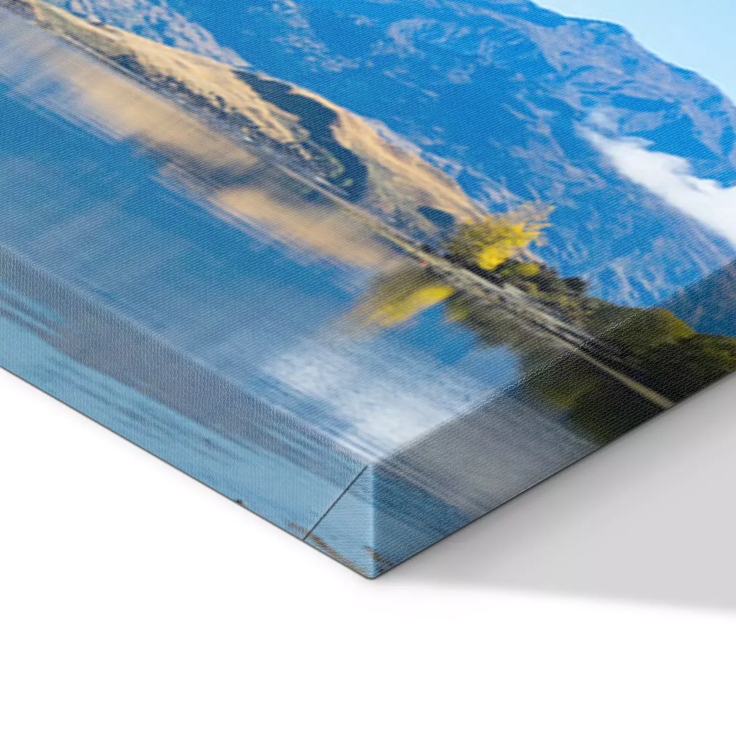 De print wordt aangebracht op hoogwaardig canvas dat op een schildersweefgetouw (spieraam) wordt gespannen. Omdat de print de zijranden bedekt, hoeft het ontwerp niet met een extra kader te worden omlijst. Wij raden ook composities aan die uit meerdere foto's bestaan en zo een coherente compositie vormen.