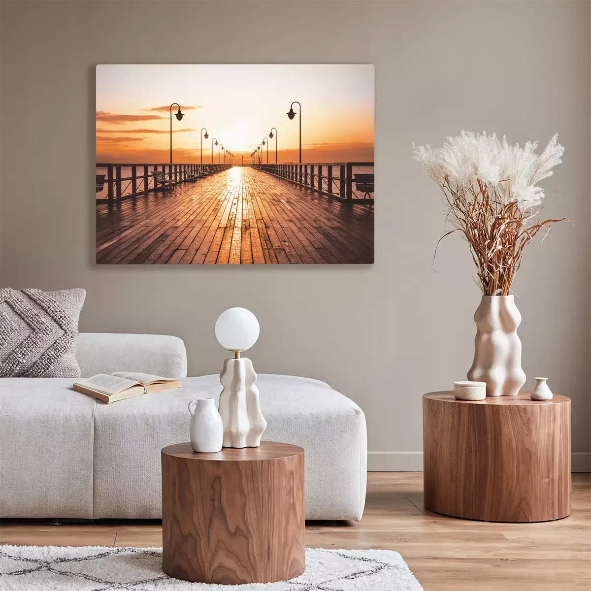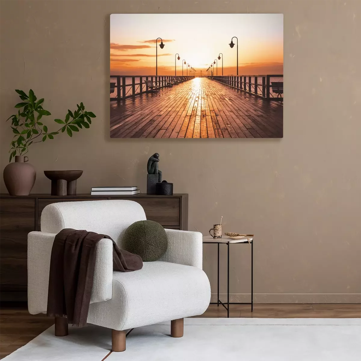 Schilderachtig landschap van de pier in de gloed van de zonsondergang