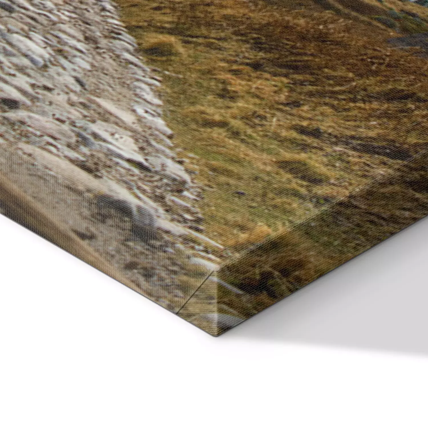 De print wordt aangebracht op hoogwaardig canvas dat op een schildersweefgetouw (spieraam) wordt gespannen. Omdat de print de zijranden bedekt, hoeft het ontwerp niet met een extra kader te worden omlijst. Wij raden ook composities aan die uit meerdere foto's bestaan en zo een coherente compositie vormen.