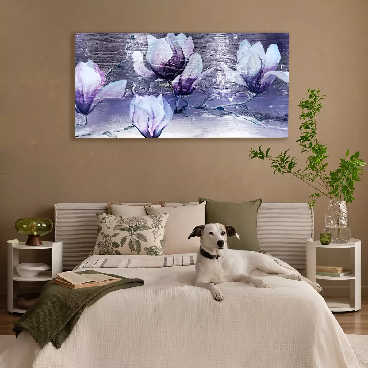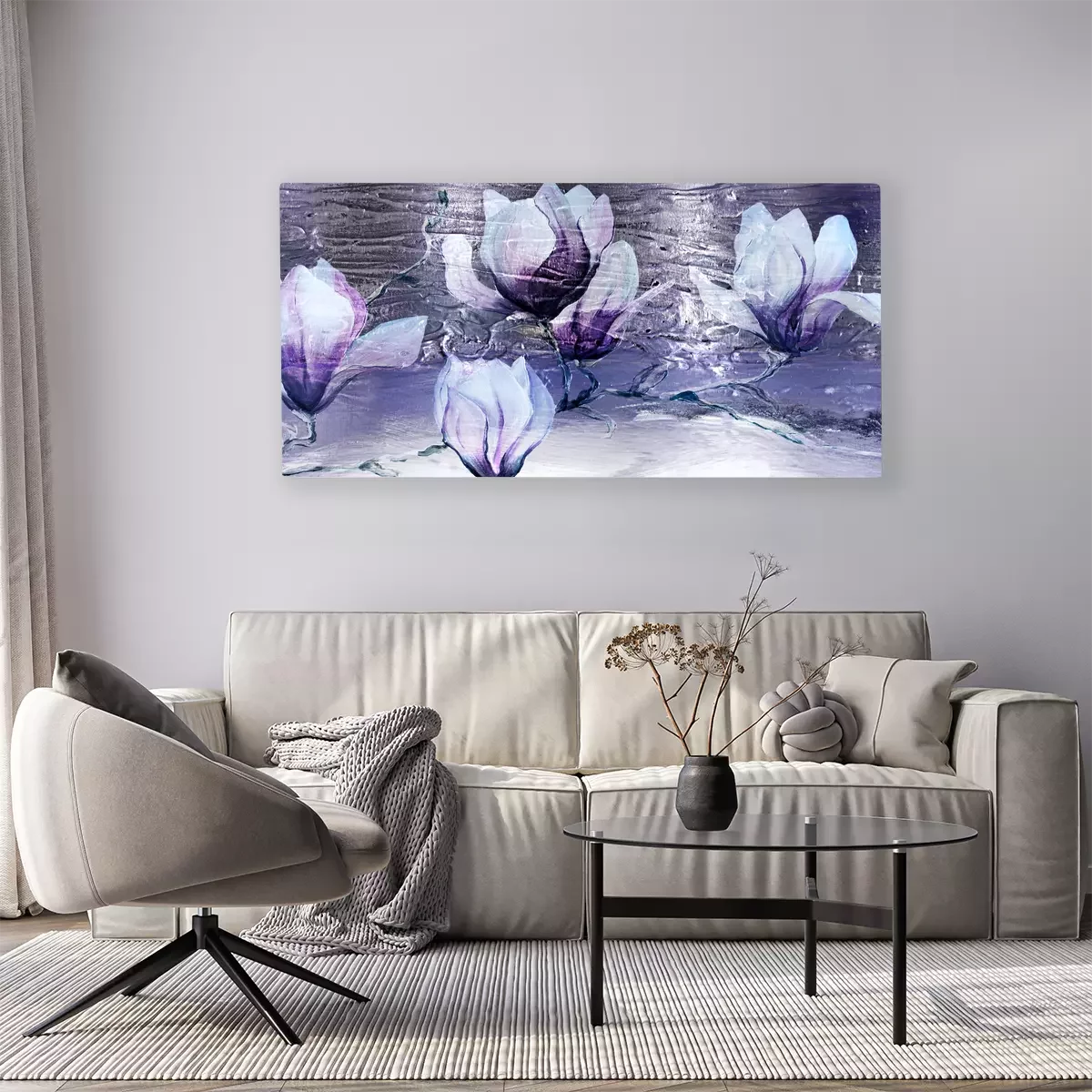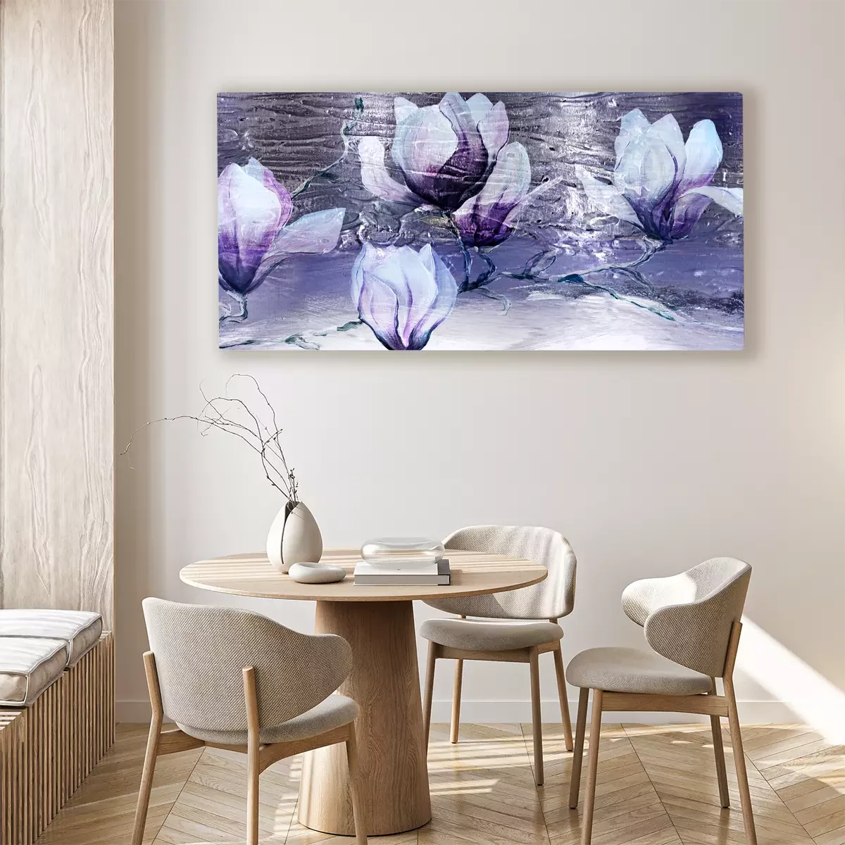 Schilderachtige paarse magnolia's op een gestructureerde achtergrond