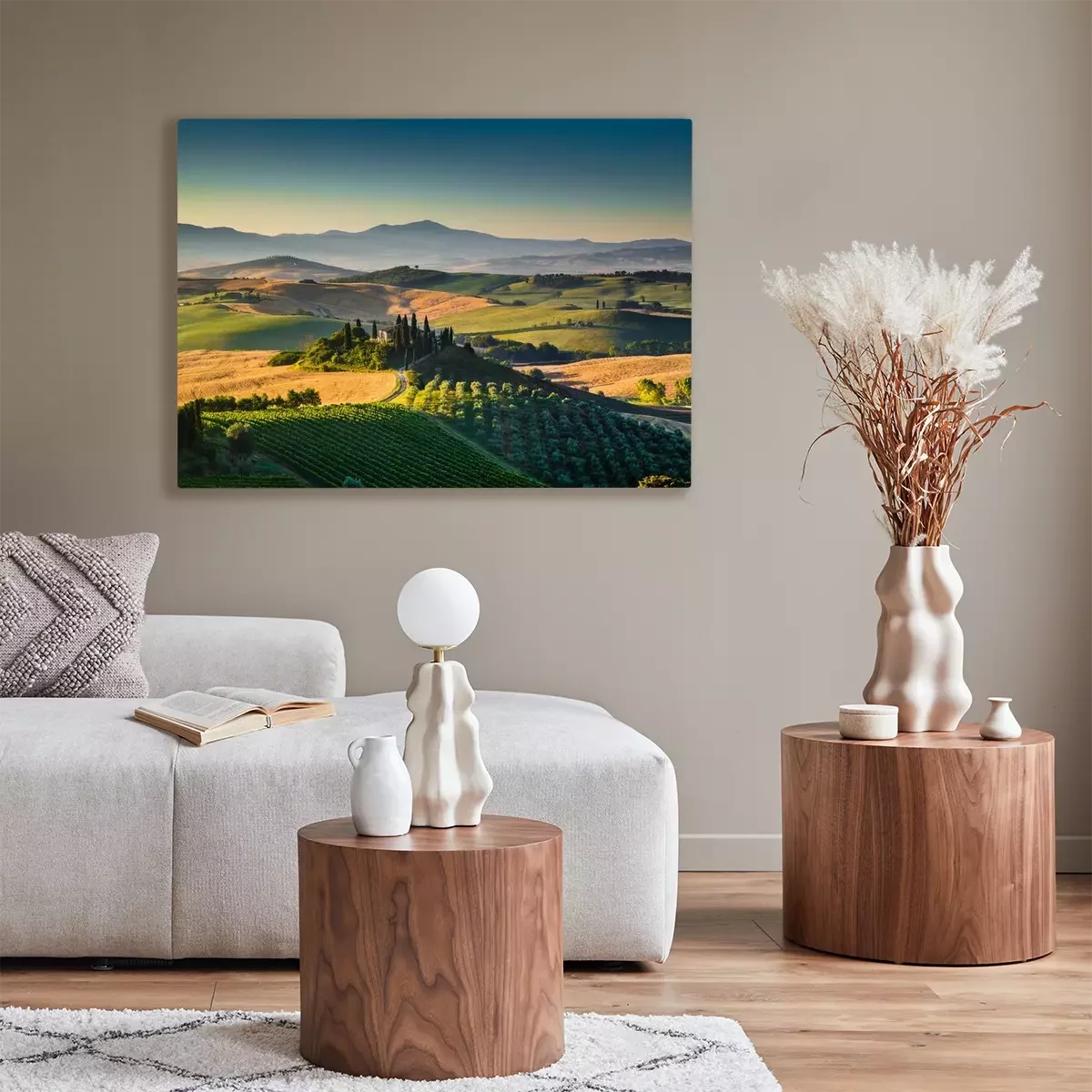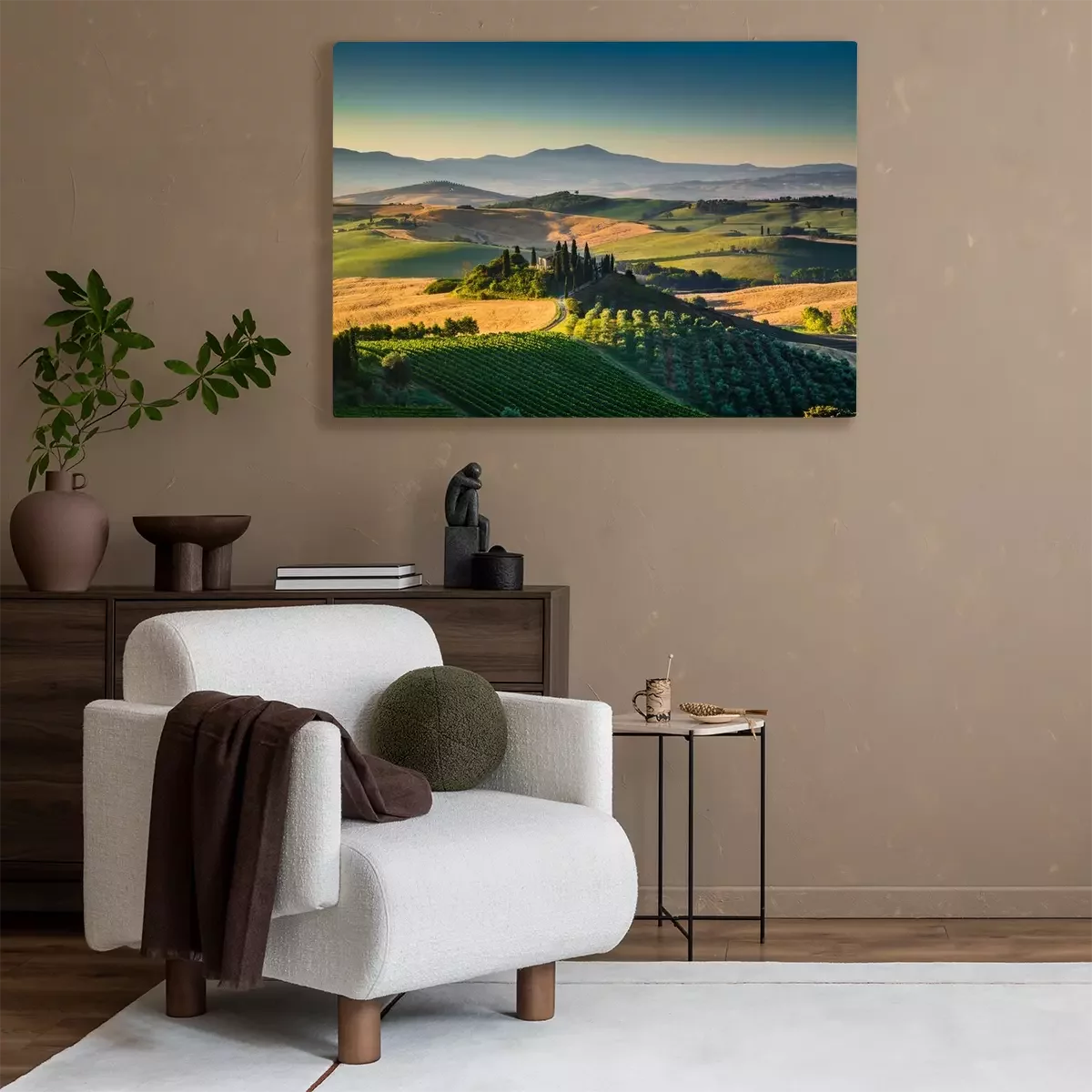 Canvas Schilderachtige Toscaanse landschap bij zonsopgang, Val d'Orcia, Italië