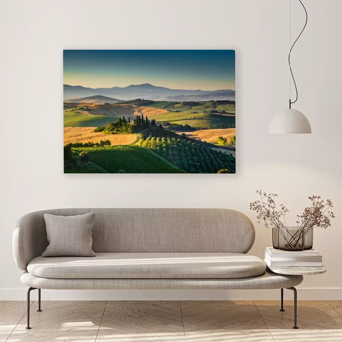 Canvas: Schilderachtige Toscaanse landschap bij zonsopgang, Val d'Orcia, Italië