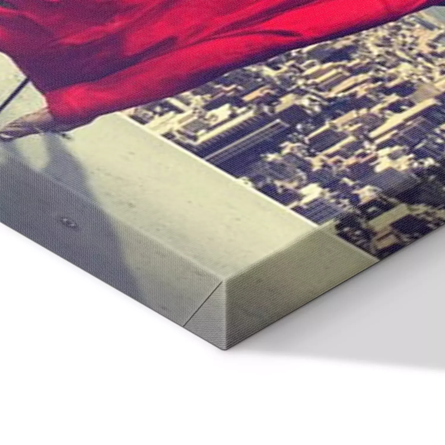 De print wordt aangebracht op hoogwaardig canvas dat op een schildersweefgetouw (spieraam) wordt gespannen. Omdat de print de zijranden bedekt, hoeft het ontwerp niet met een extra kader te worden omlijst. Wij raden ook composities aan die uit meerdere foto's bestaan en zo een coherente compositie vormen.