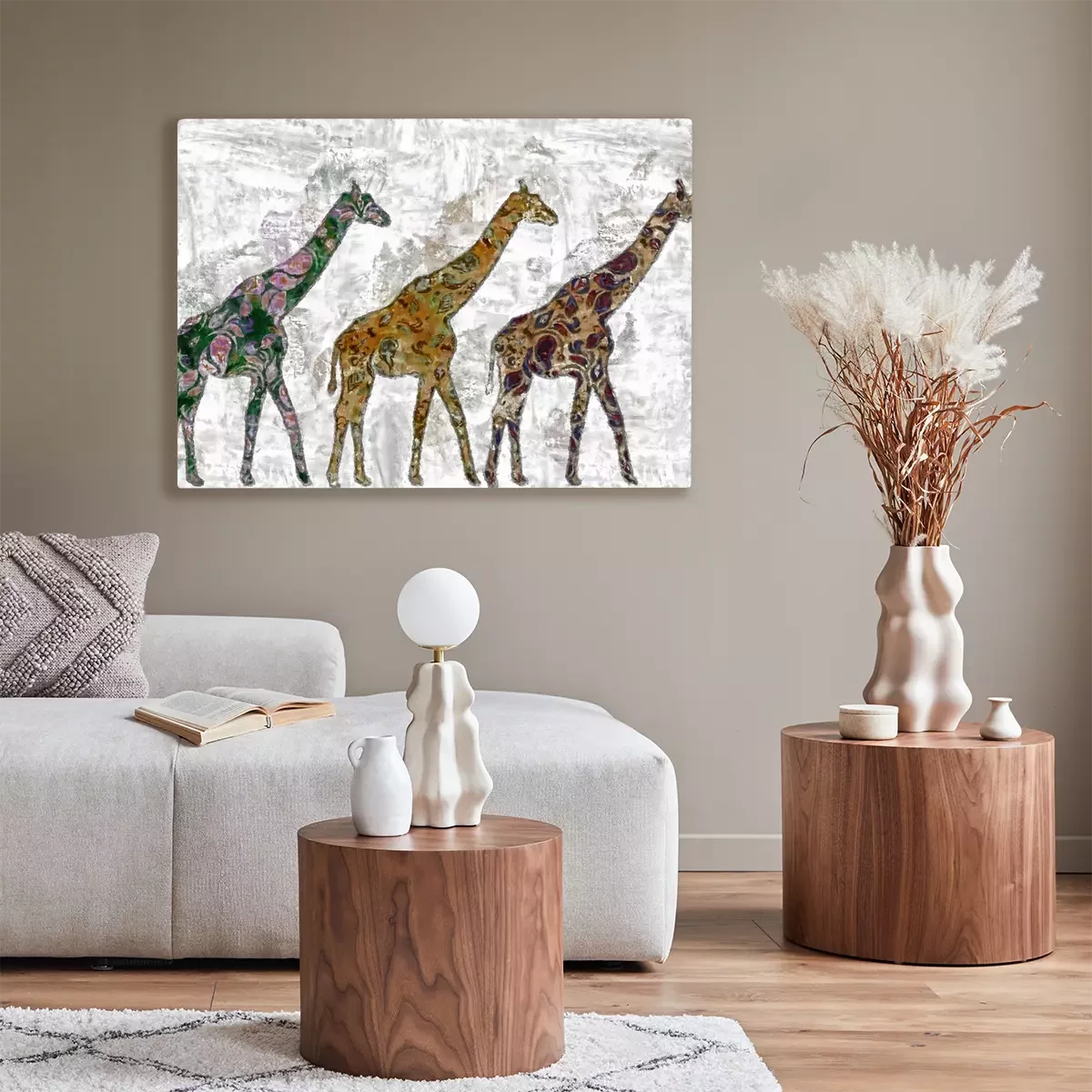 De print wordt aangebracht op hoogwaardig canvas dat op een schildersweefgetouw (spieraam) wordt gespannen. Omdat de print de zijranden bedekt, hoeft het ontwerp niet met een extra kader te worden omlijst. Wij raden ook composities aan die uit meerdere foto's bestaan en zo een coherente compositie vormen.