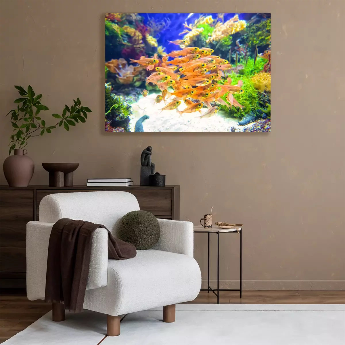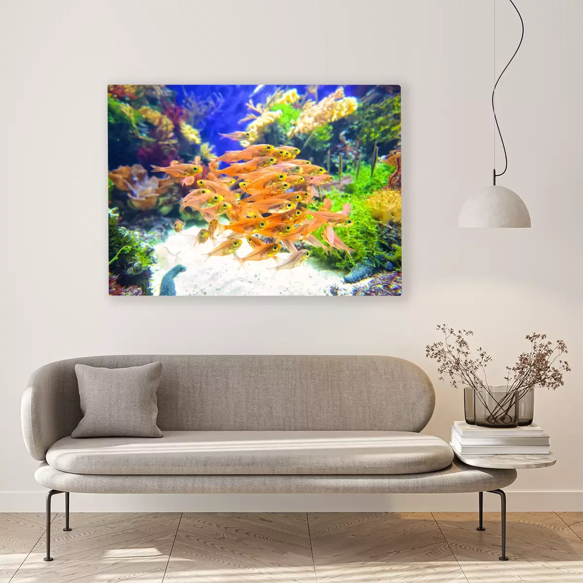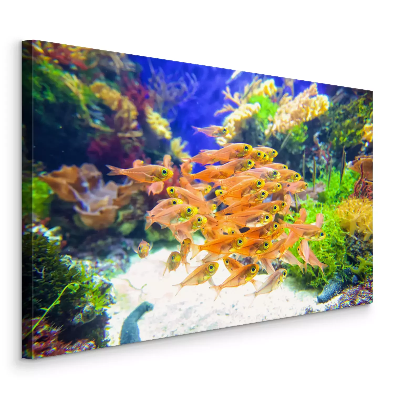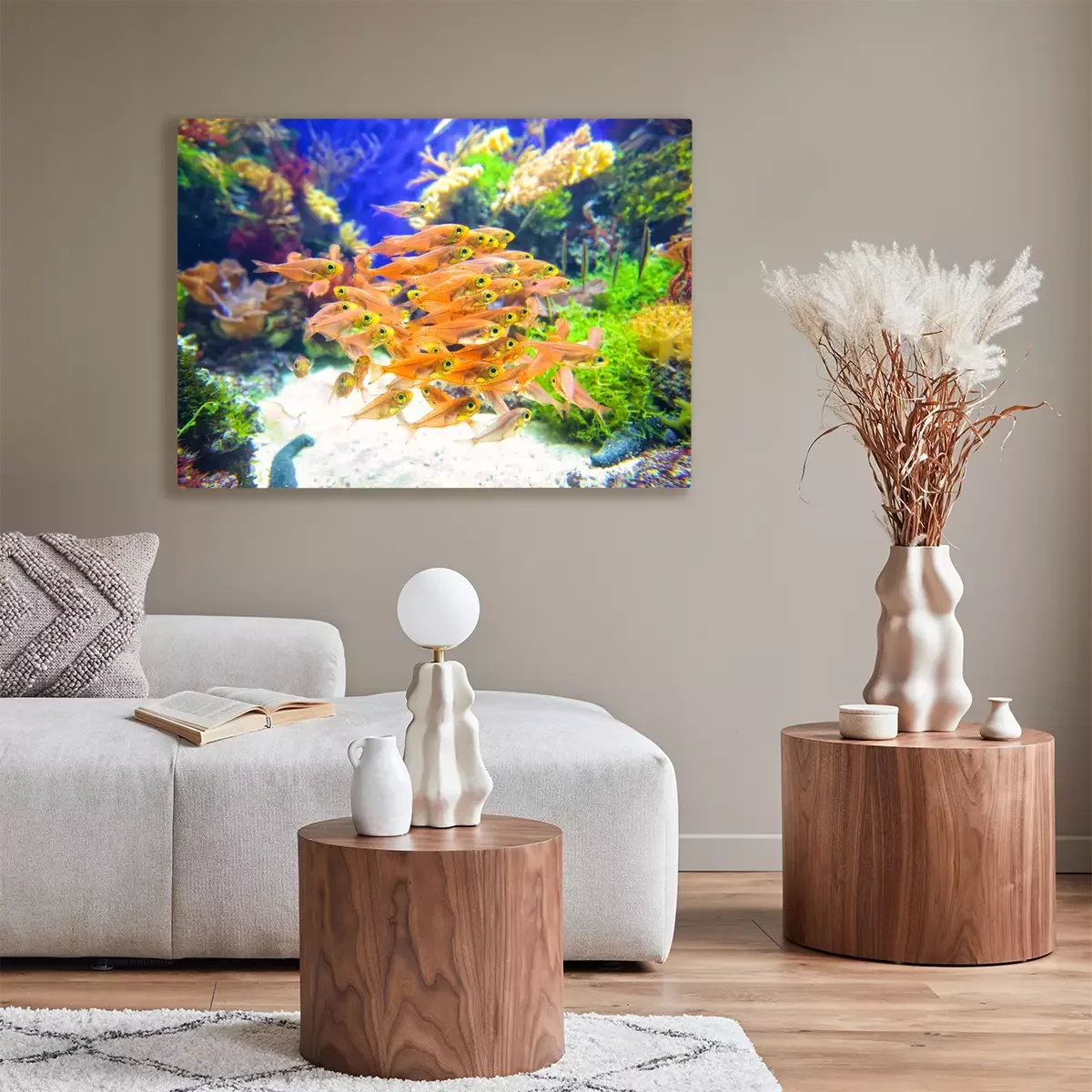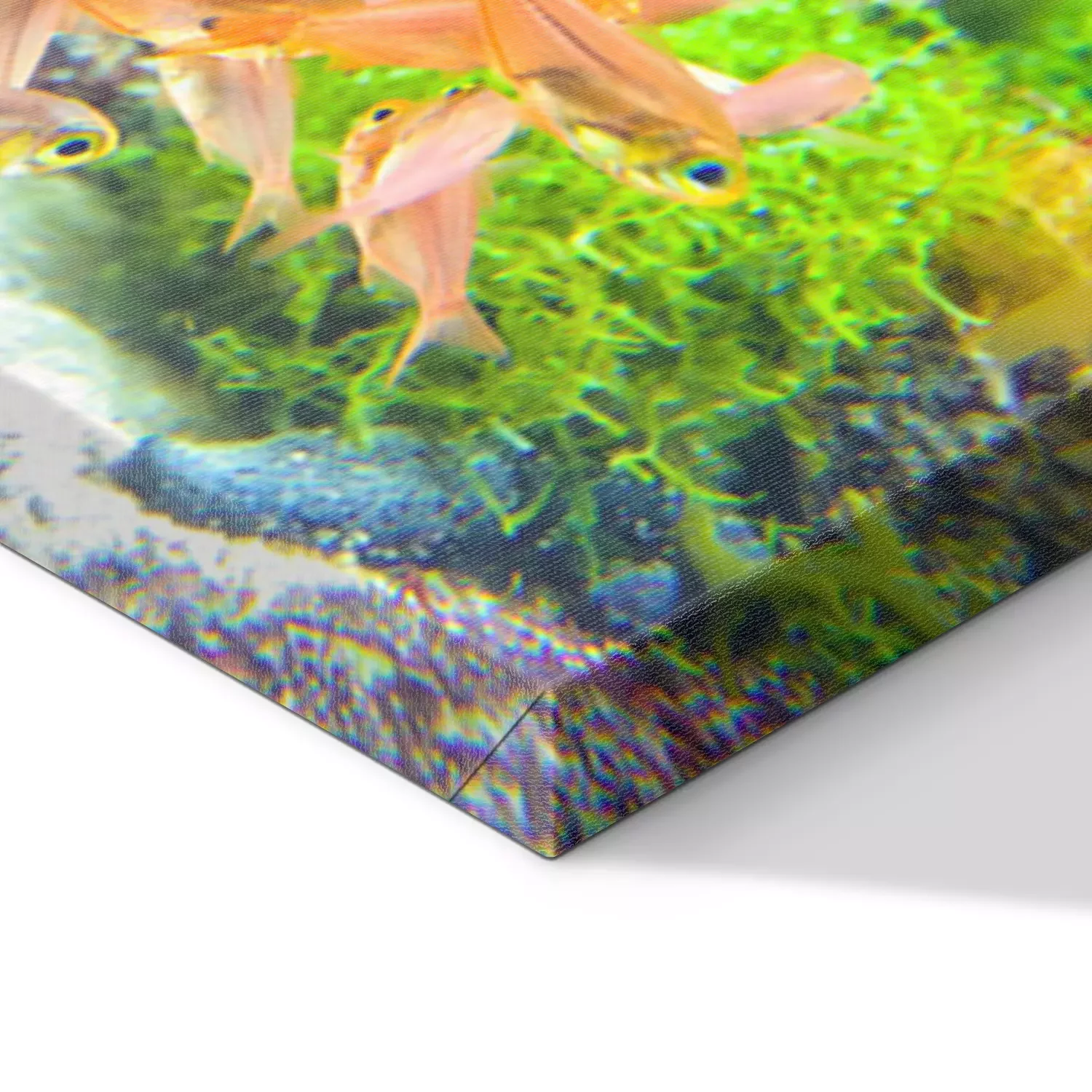 De print wordt aangebracht op hoogwaardig canvas dat op een schildersweefgetouw (spieraam) wordt gespannen. Omdat de print de zijranden bedekt, hoeft het ontwerp niet met een extra kader te worden omlijst. Wij raden ook composities aan die uit meerdere foto's bestaan en zo een coherente compositie vormen.