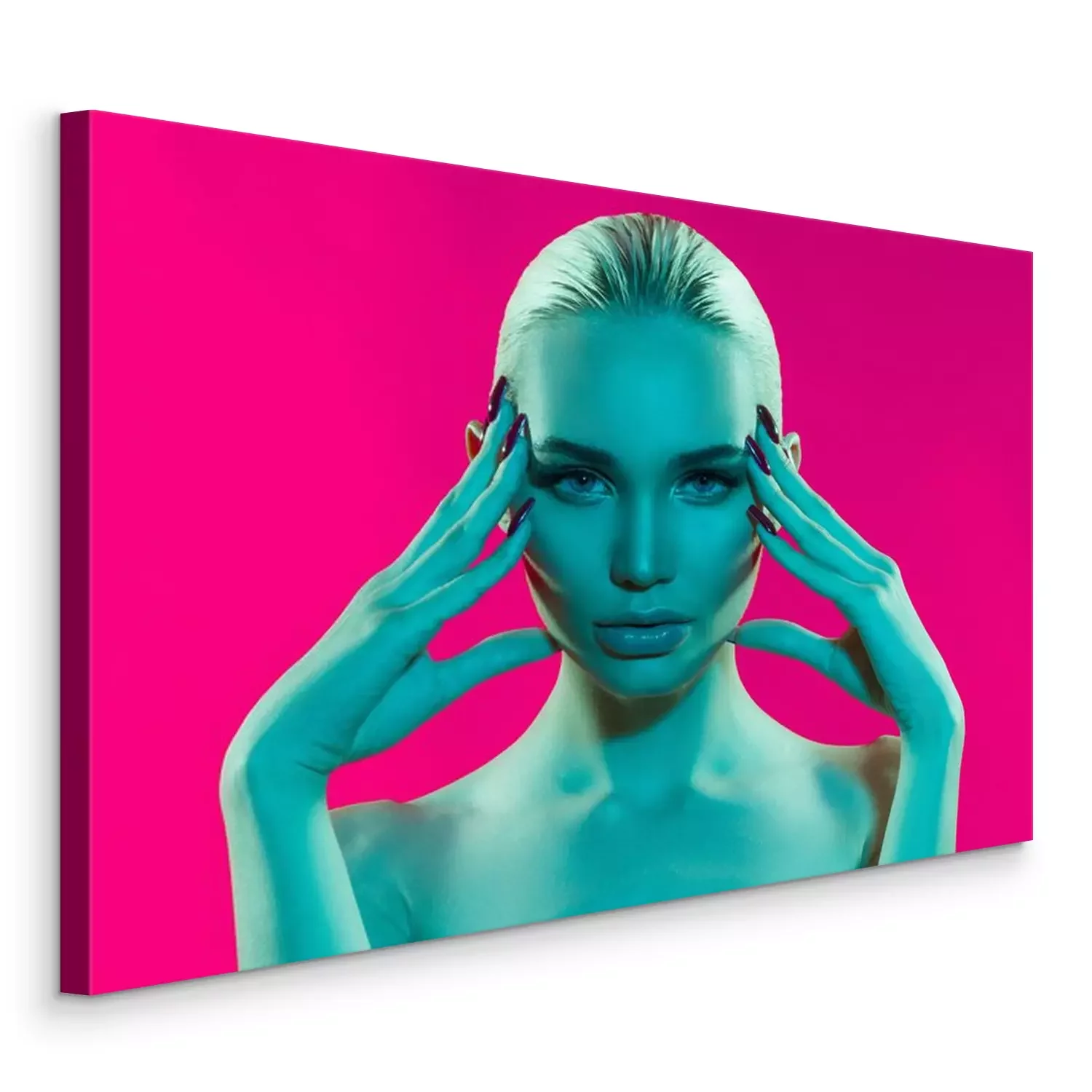 Canvas Schoonheid portret van schattige sexy jonge vrouw op roze achtergrond