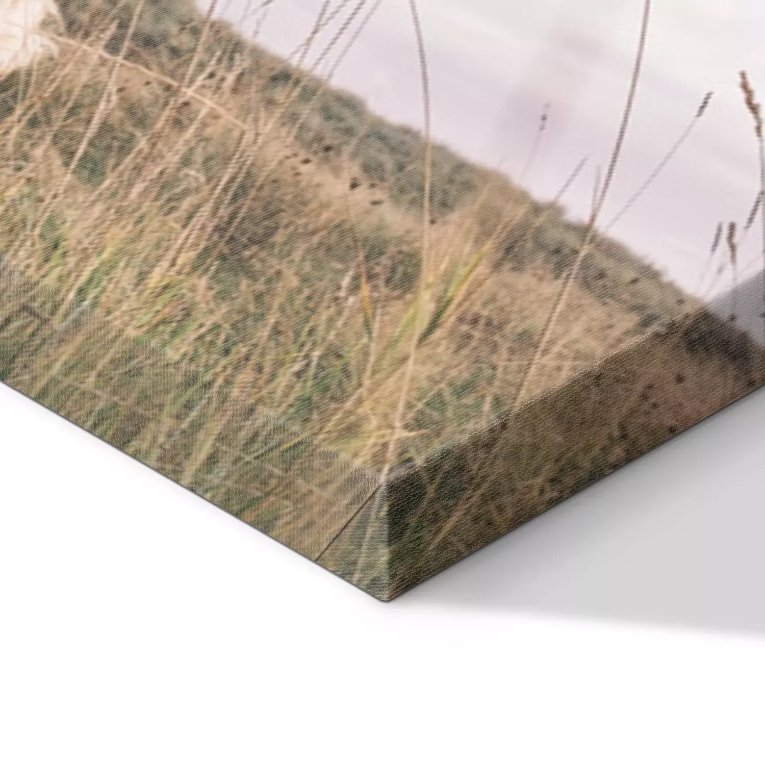 De print wordt aangebracht op hoogwaardig canvas dat op een schildersweefgetouw (spieraam) wordt gespannen. Omdat de print de zijranden bedekt, hoeft het ontwerp niet met een extra kader te worden omlijst. Wij raden ook composities aan die uit meerdere foto's bestaan en zo een coherente compositie vormen.