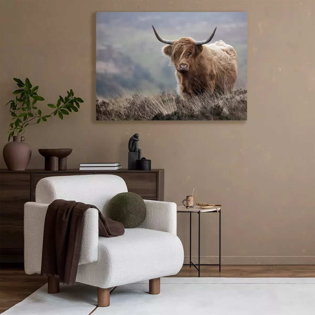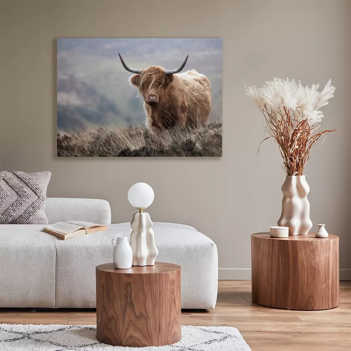 Canvas: Schotse koe in herfstlandschap