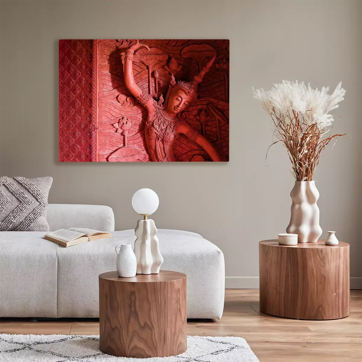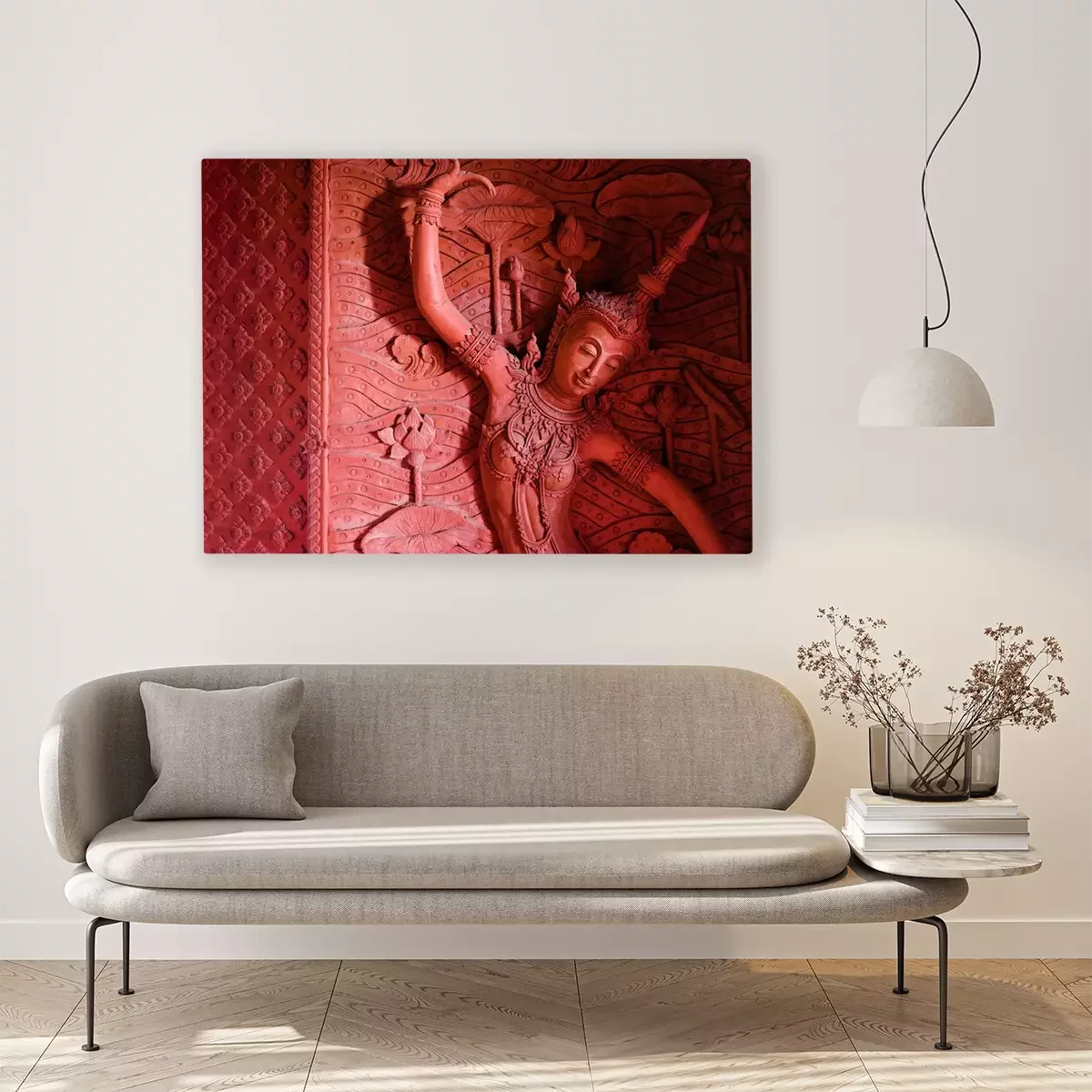 Canvas: Sculpture statue of goddesses in Hindu and Buddhism religions at temple, Thailand.