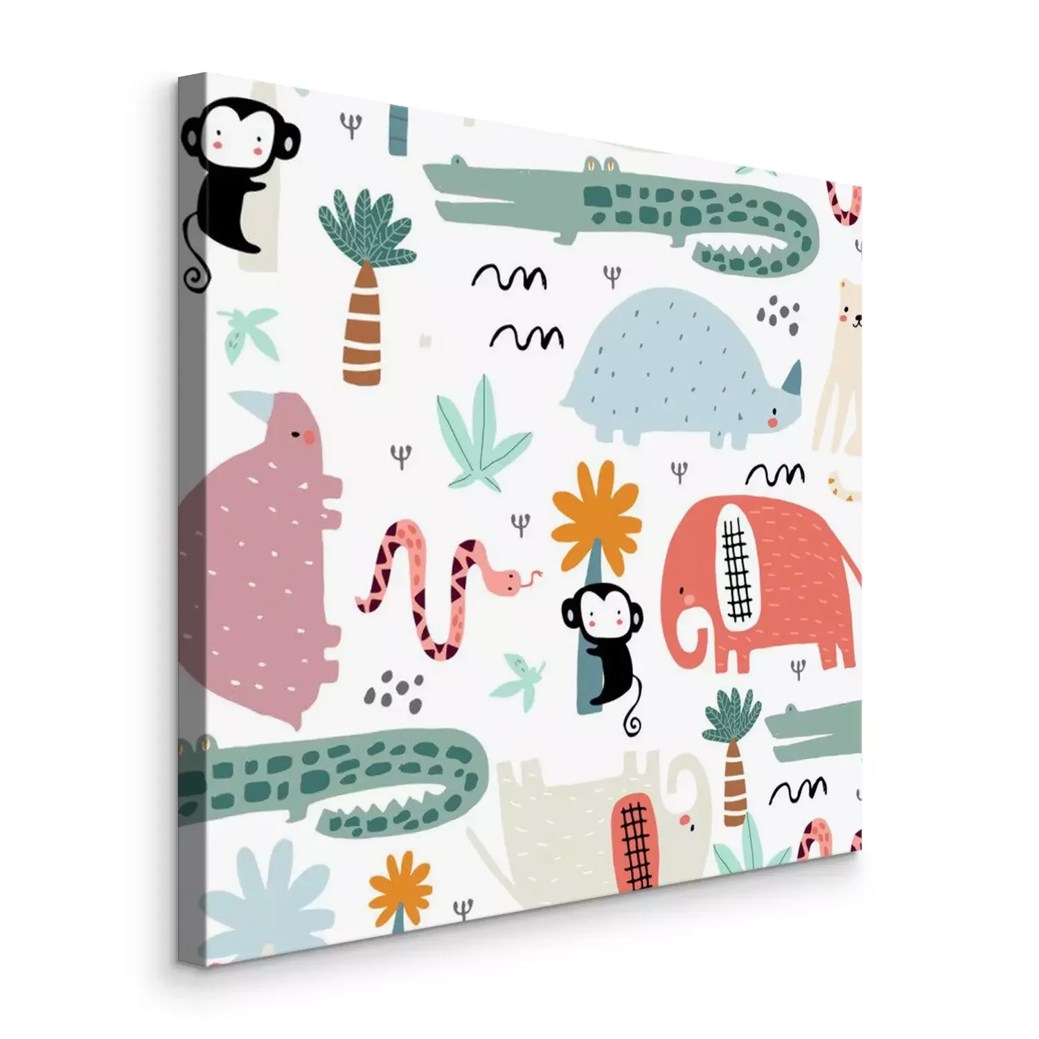 Canvas Seamless childish pattern with african animals. Creative scandinavian style kids texture for fabric, wrapping, textile, wallpaper, apparel. Vector illustration