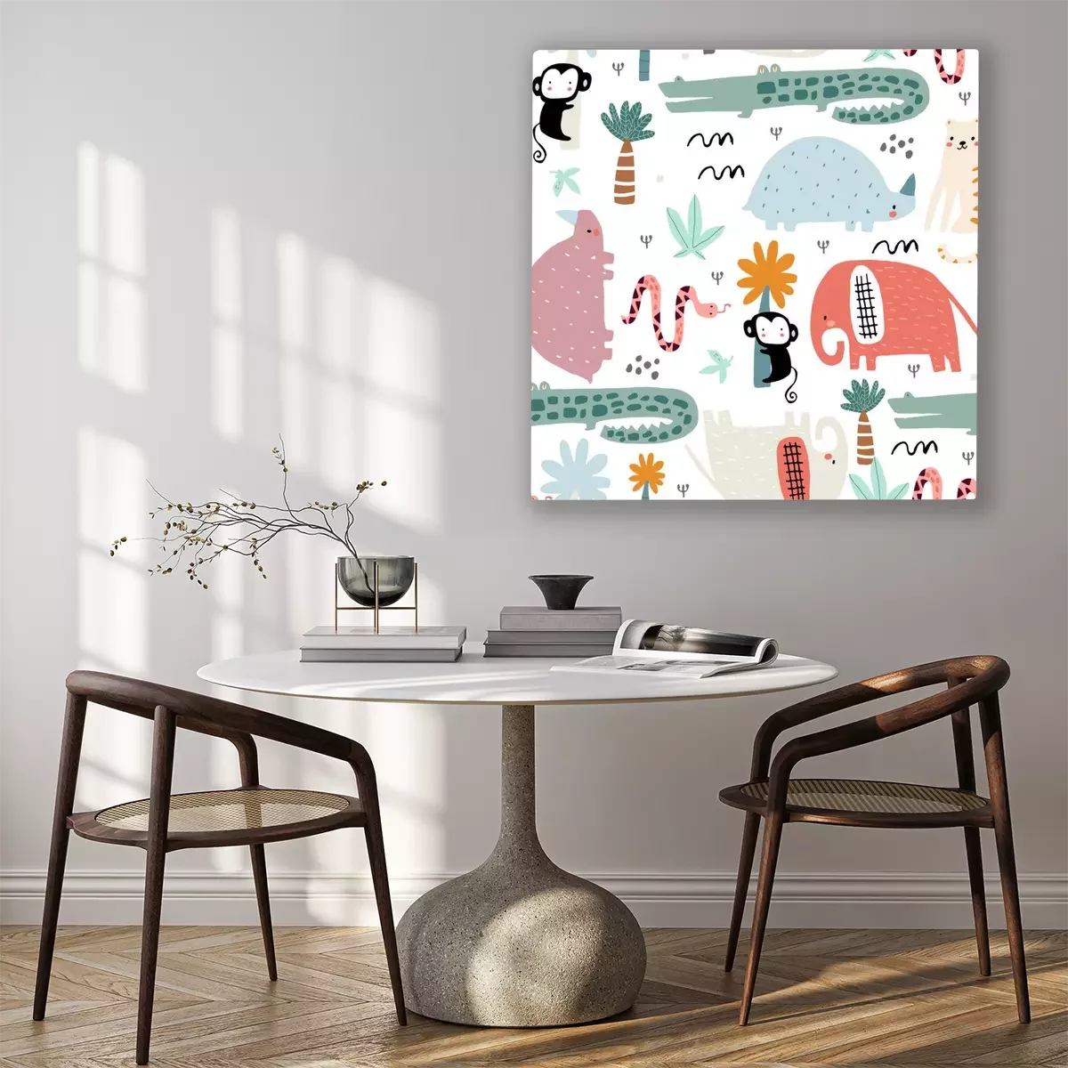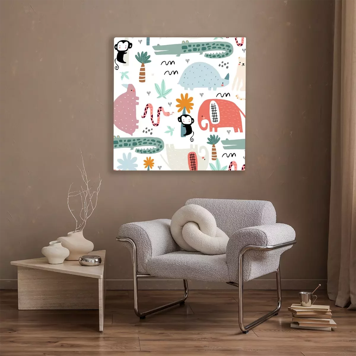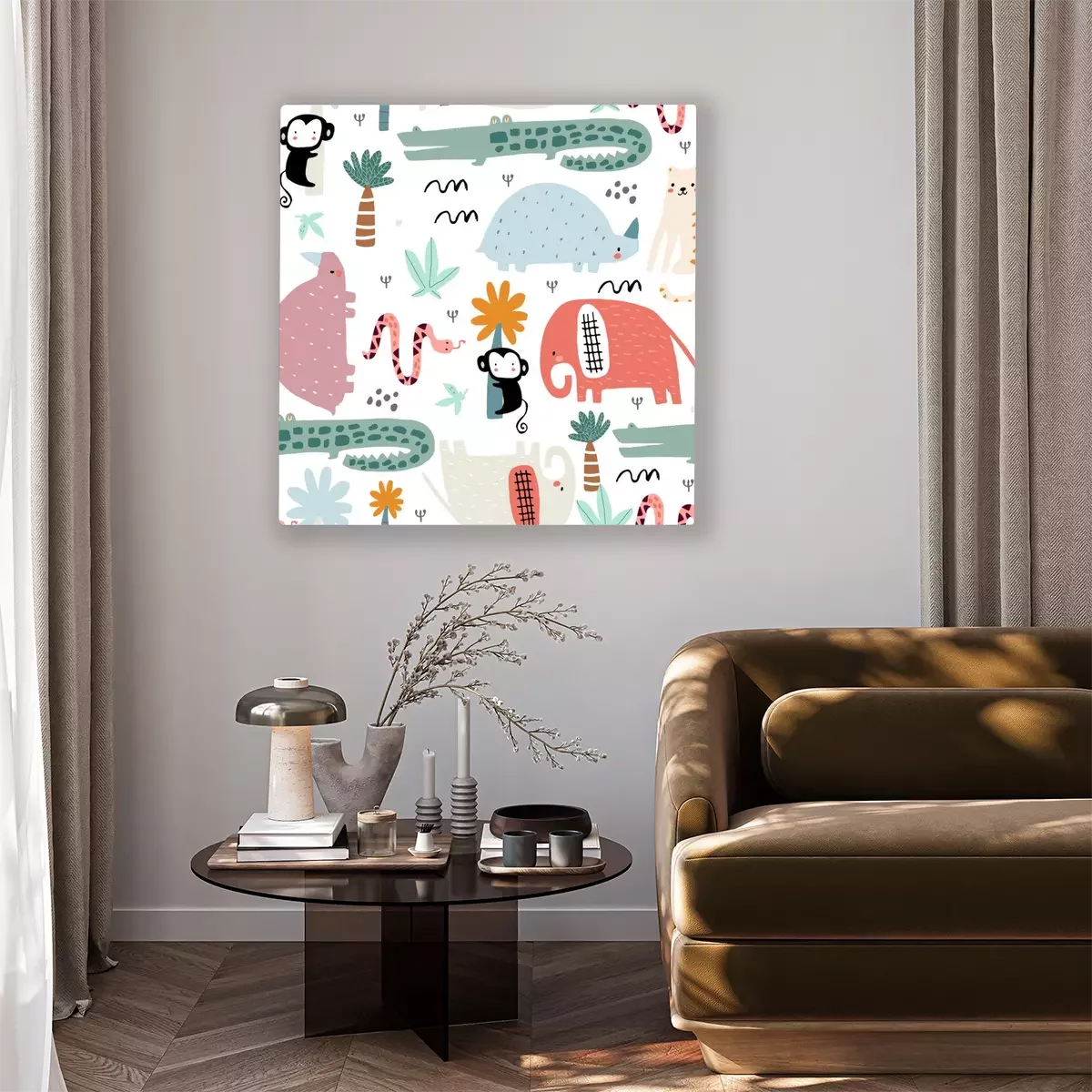 Canvas: Seamless childish pattern with african animals. Creative scandinavian style kids texture for fabric, wrapping, textile, wallpaper, apparel. Vector illustration