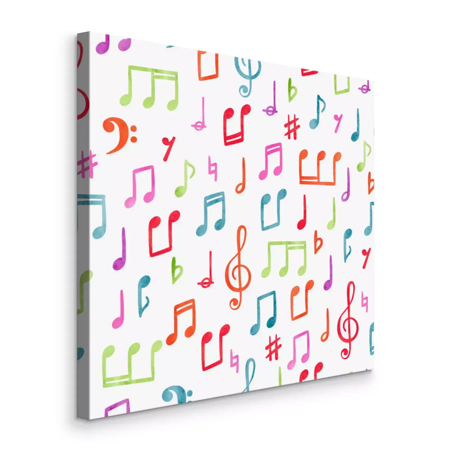 Canvas: Seamless colorful music notes pattern. Musical watercolor background.