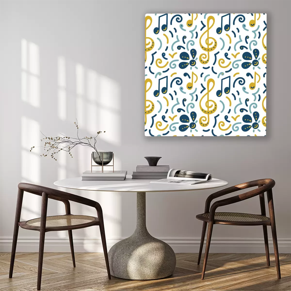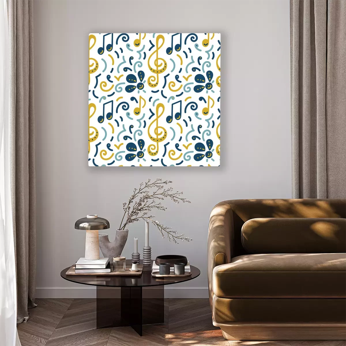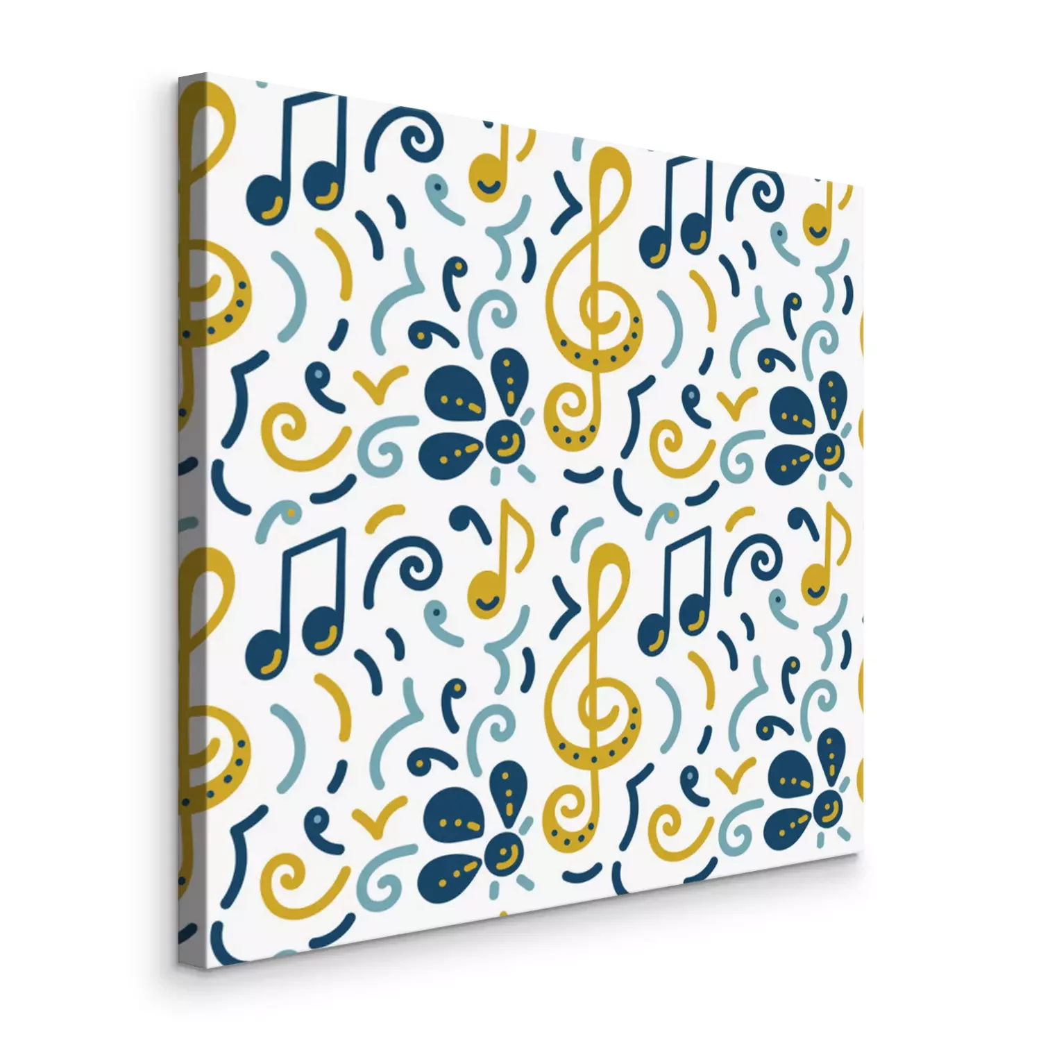 Canvas Seamless pattern. Doodle vector background, music concert festival. Musical note, treble clef, flowers