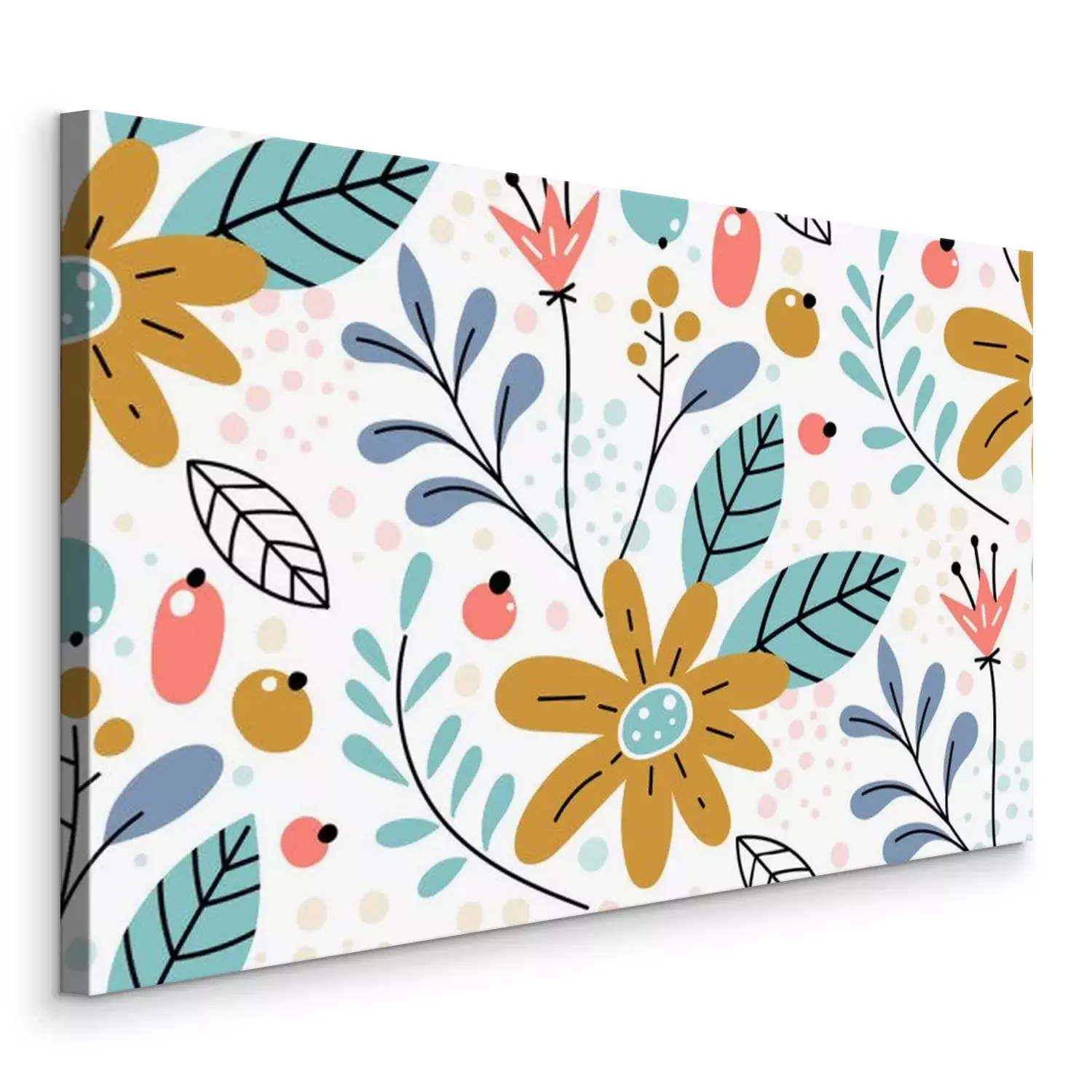 Canvas Seamless pattern with creative decorative flowers in scandinavian style.