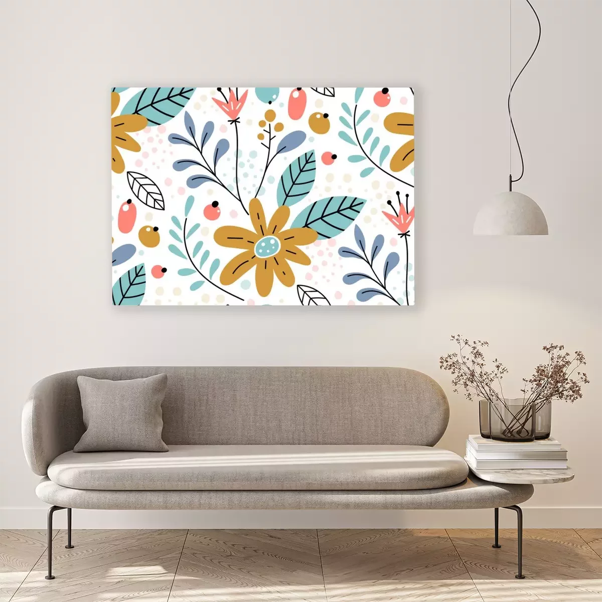 Canvas: Seamless pattern with creative decorative flowers in scandinavian style.