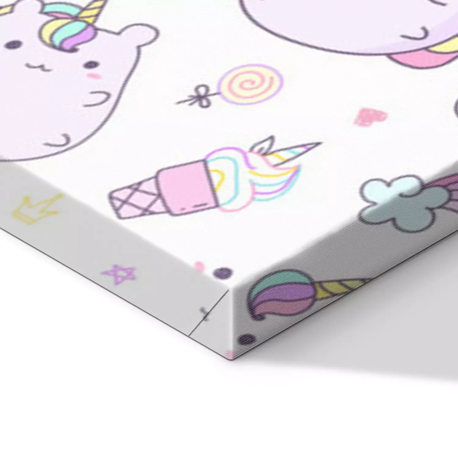 Canvas: Seamless pattern with hand drawn unicorn in pastel color. Kawaii unicorn background for kid.