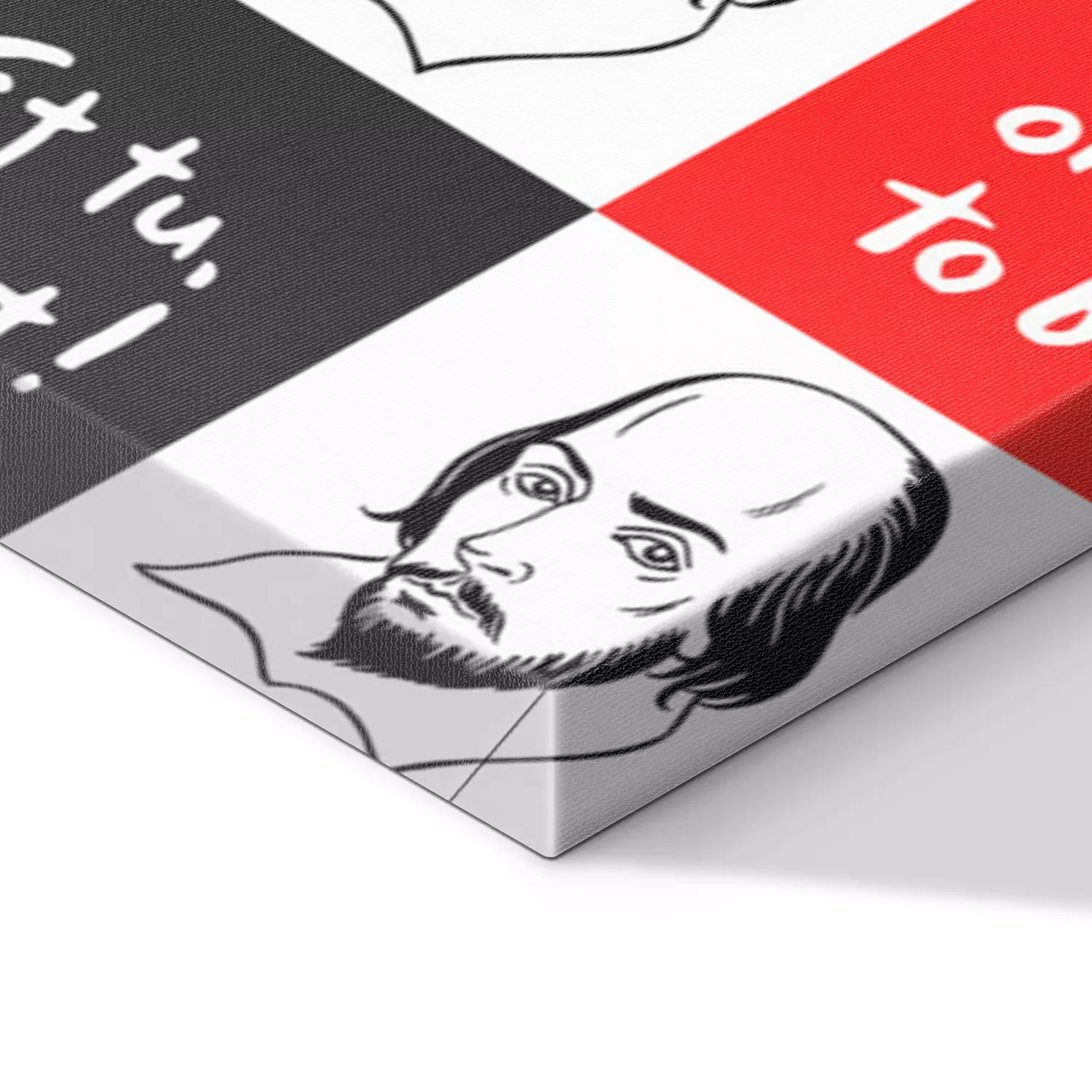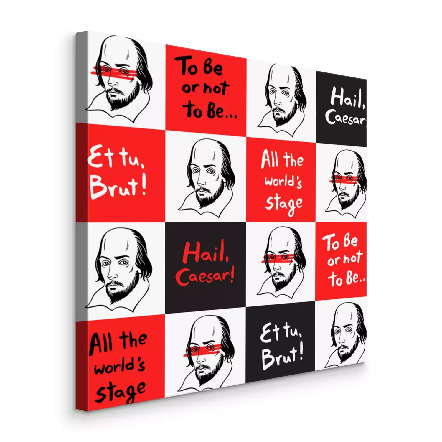 Canvas Seamless vector pattern with Shakespeare portrait and famous writer's citations. Geometrical, literary background. Shakespeare illustration with quotes from author's plays. Chessboard texture.
