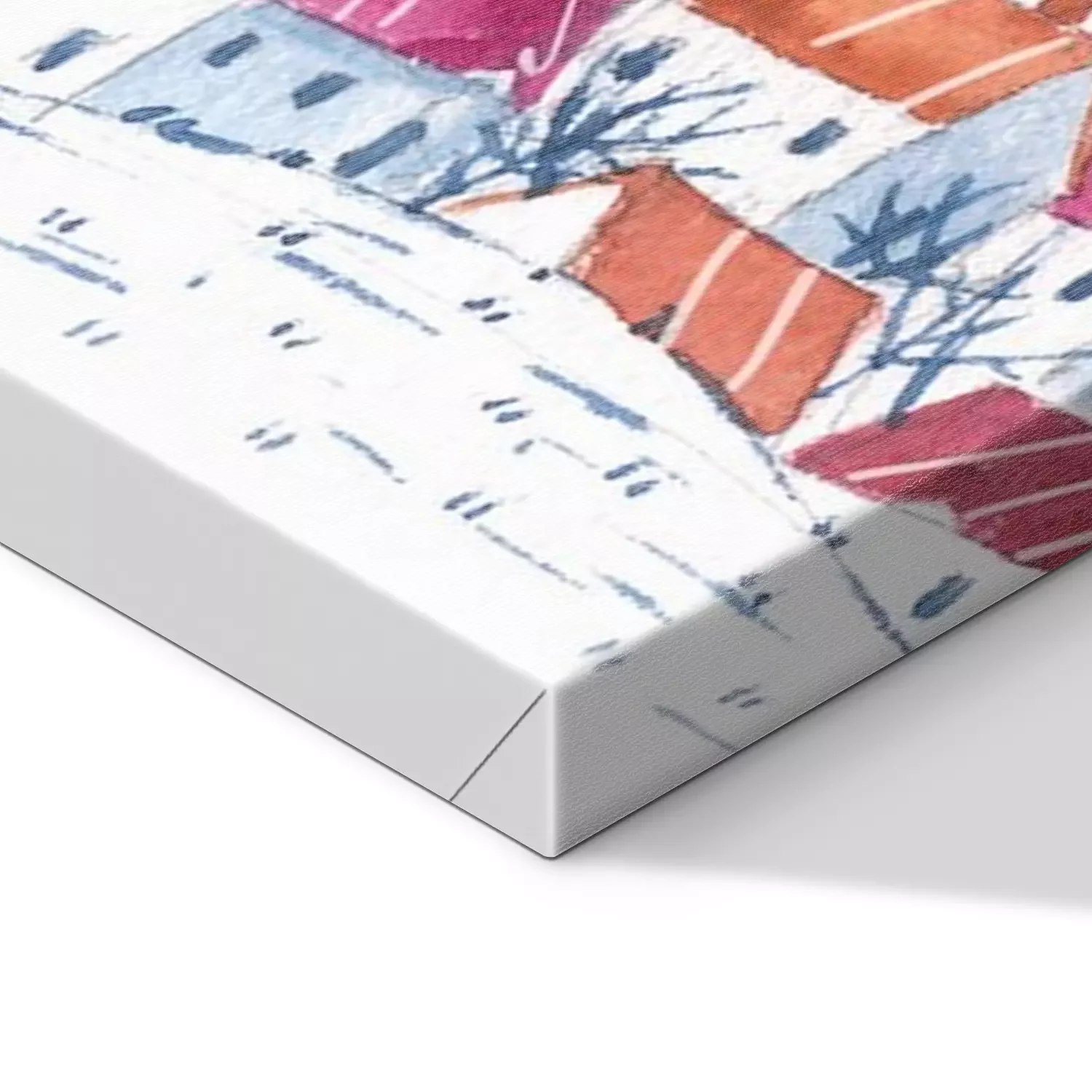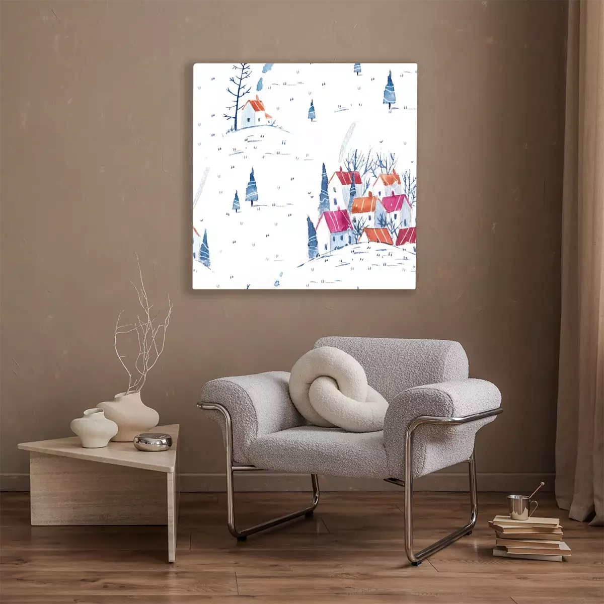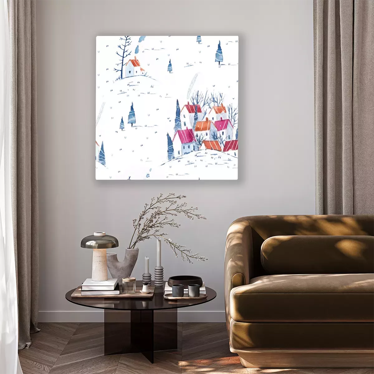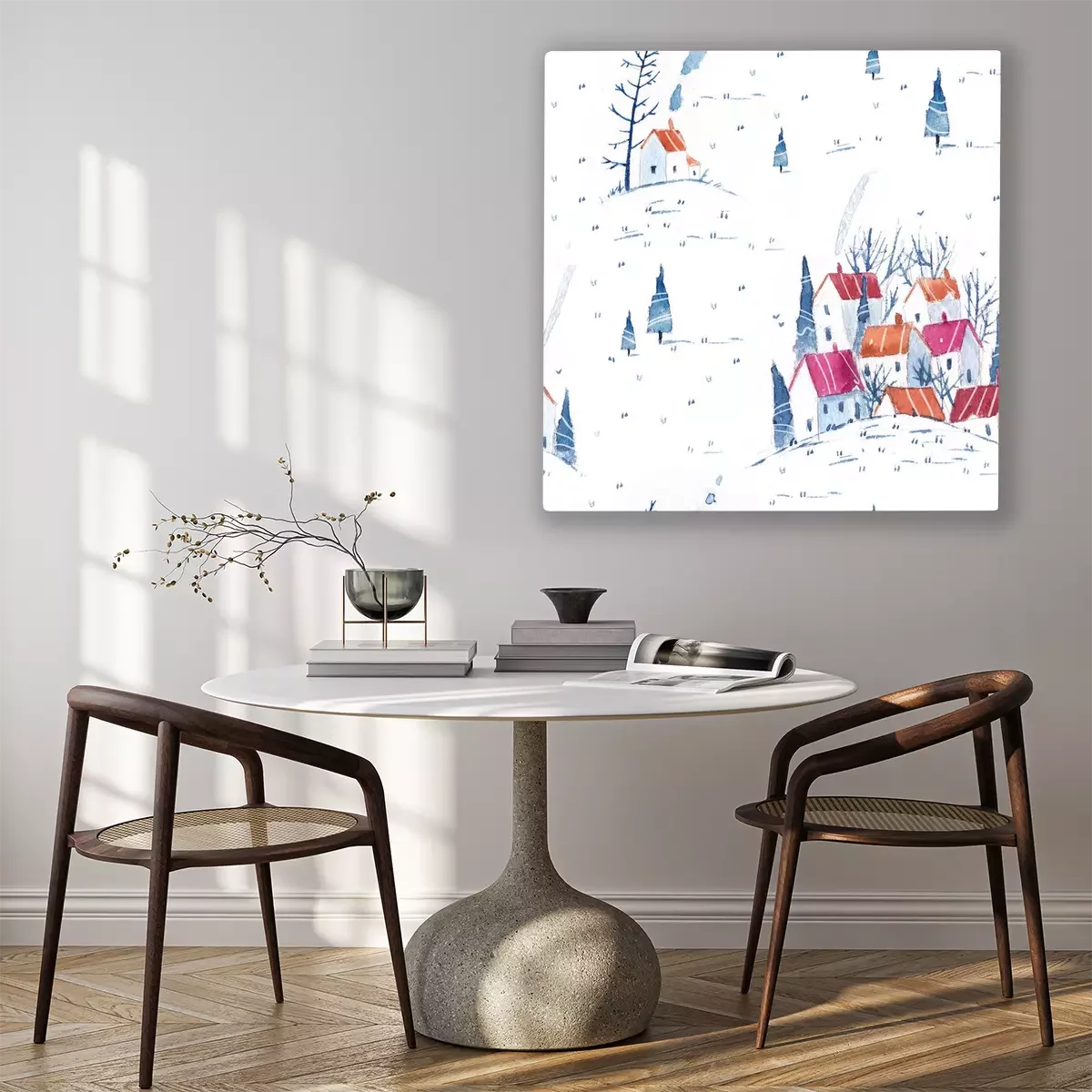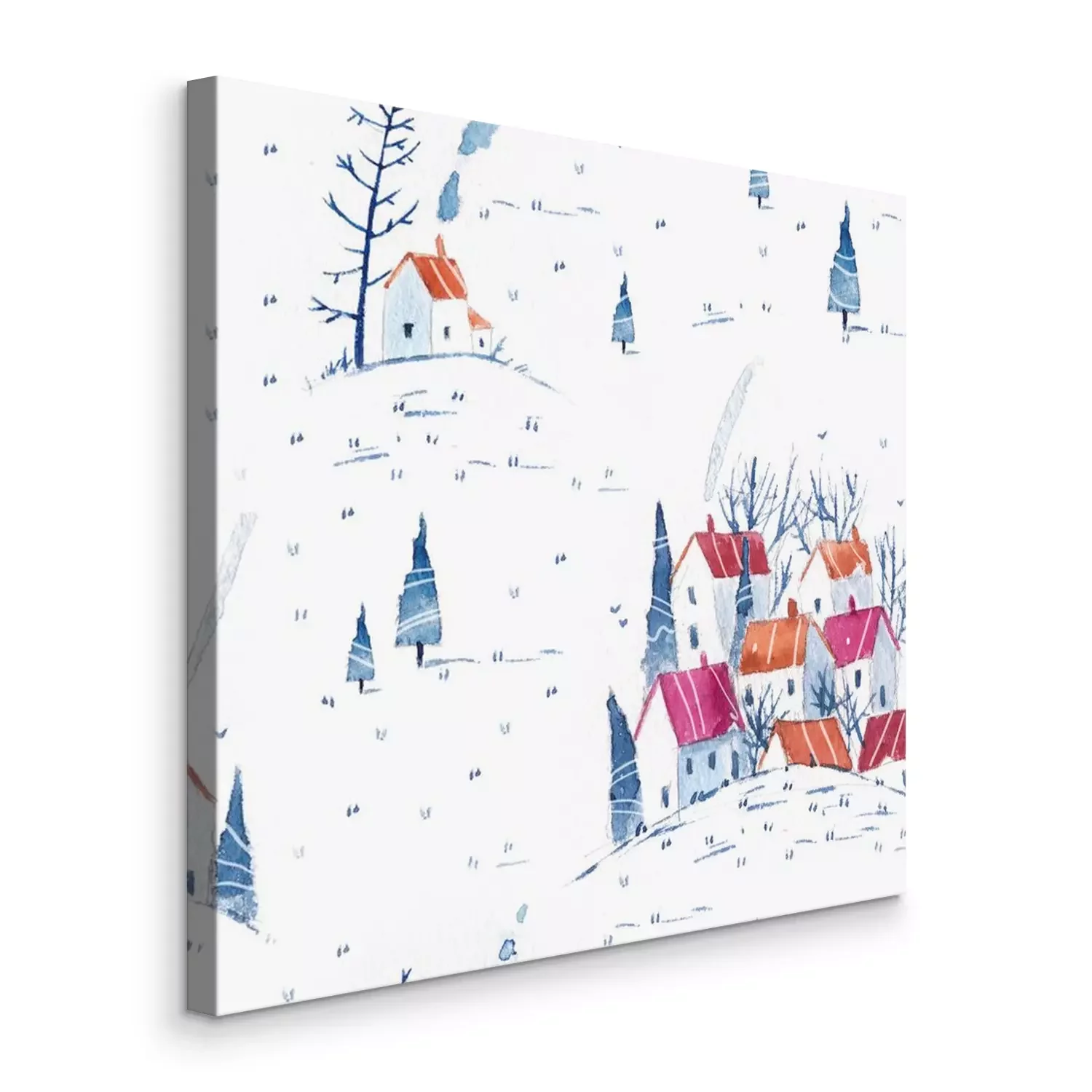 Canvas Seamless watercolor pattern with a small town, farms, houses, hills.