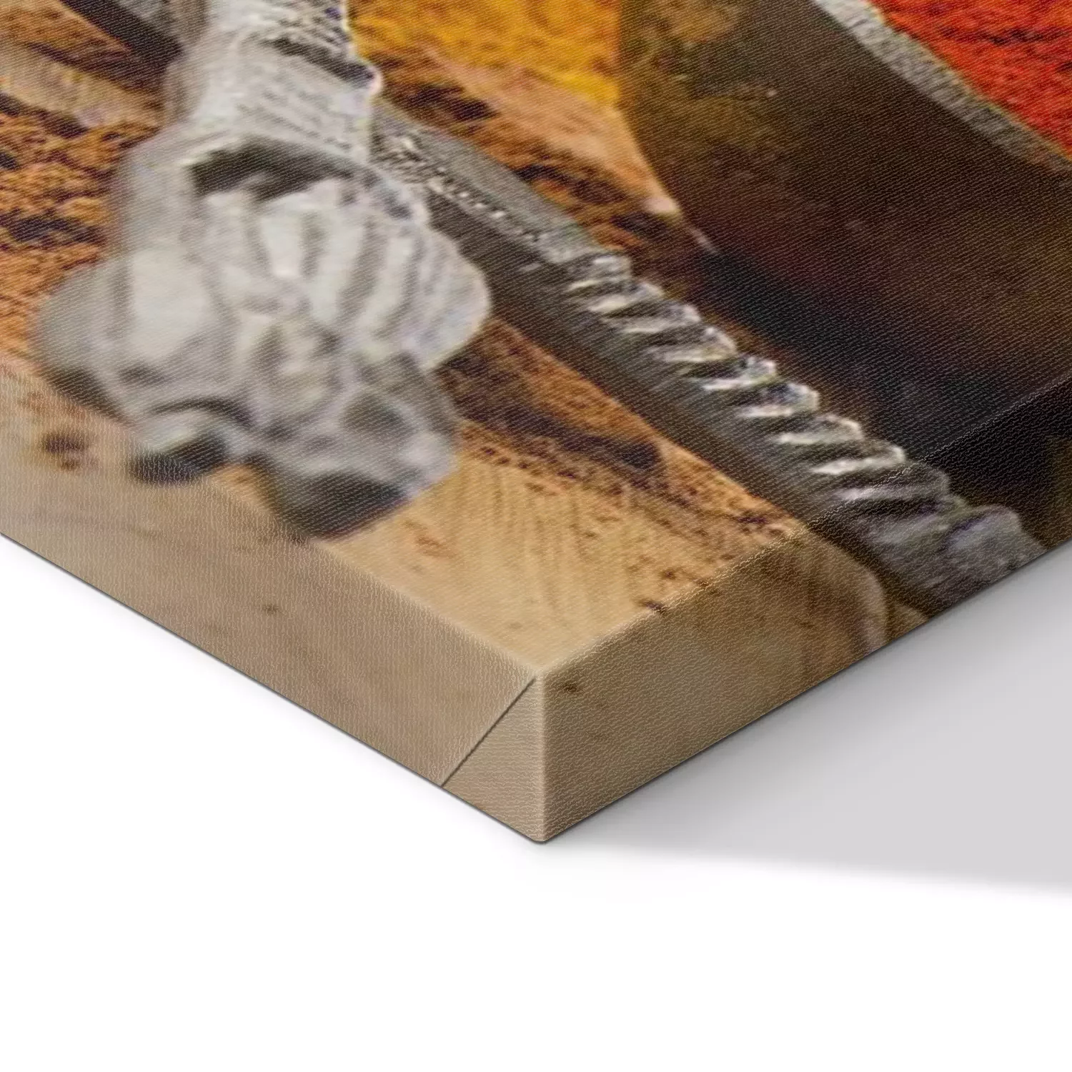 De print wordt aangebracht op hoogwaardig canvas dat op een schildersweefgetouw (spieraam) wordt gespannen. Omdat de print de zijranden bedekt, hoeft het ontwerp niet met een extra kader te worden omlijst. Wij raden ook composities aan die uit meerdere foto's bestaan en zo een coherente compositie vormen.