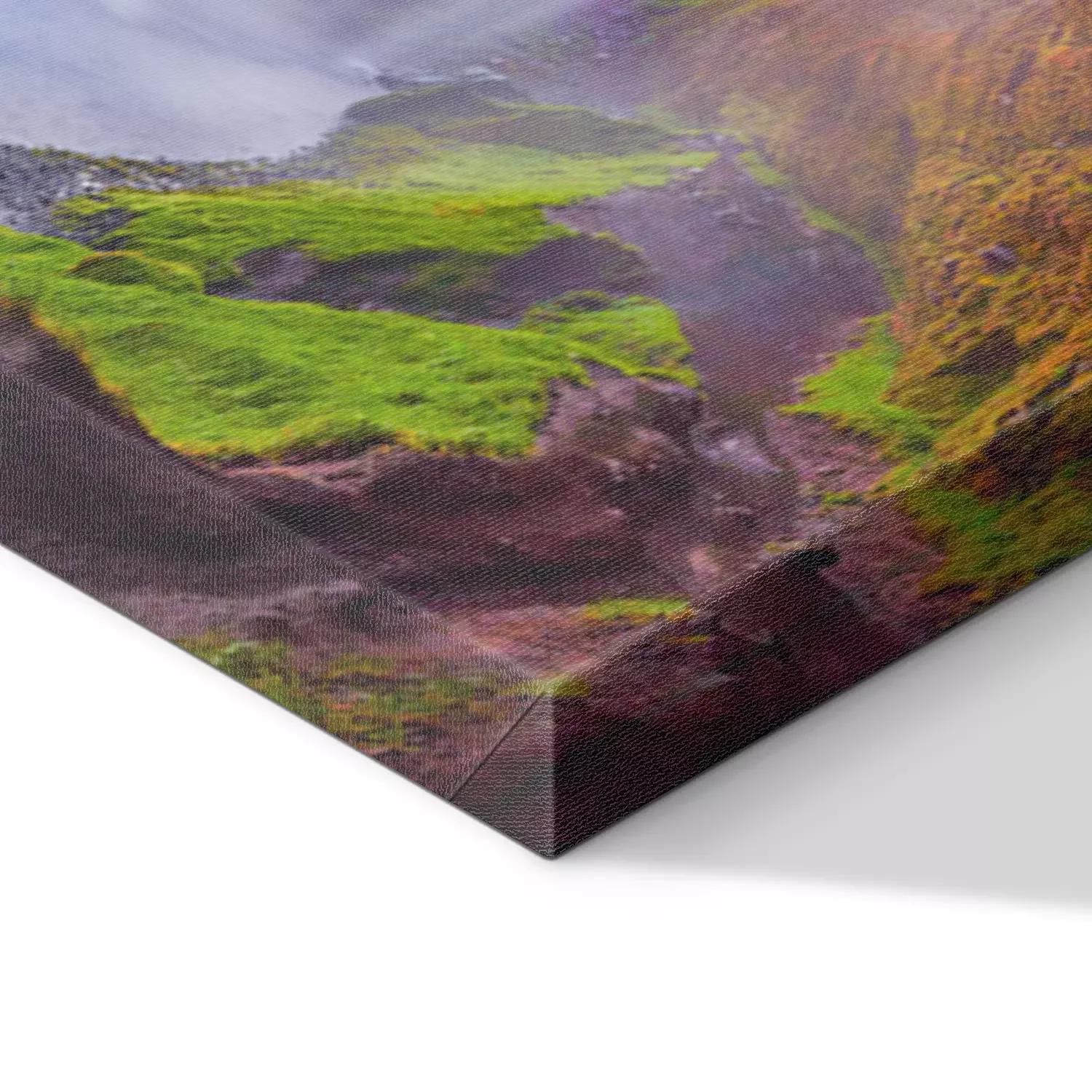 De print wordt aangebracht op hoogwaardig canvas dat op een schildersweefgetouw (spieraam) wordt gespannen. Omdat de print de zijranden bedekt, hoeft het ontwerp niet met een extra kader te worden omlijst. Wij raden ook composities aan die uit meerdere foto's bestaan en zo een coherente compositie vormen.