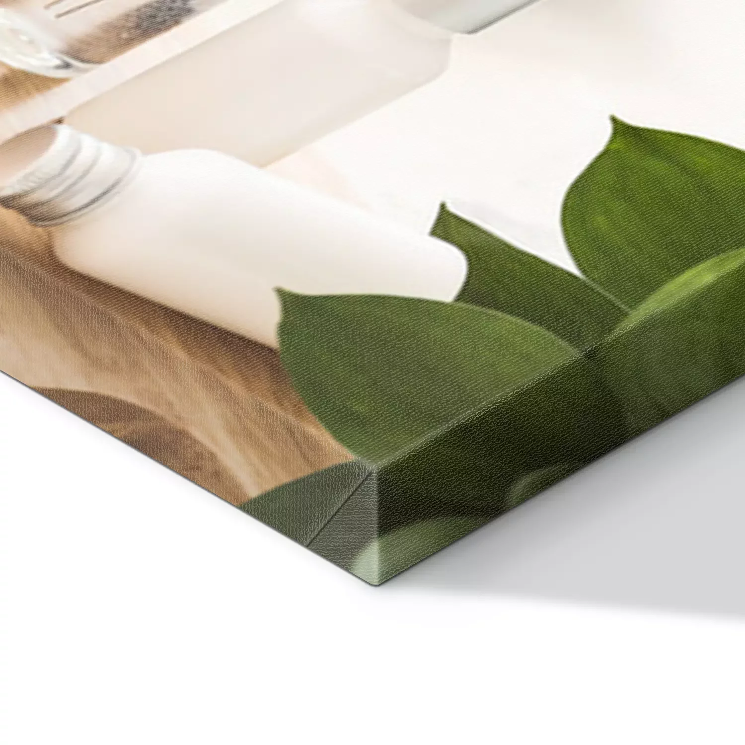 De print wordt aangebracht op hoogwaardig canvas dat op een schildersweefgetouw (spieraam) wordt gespannen. Omdat de print de zijranden bedekt, hoeft het ontwerp niet met een extra kader te worden omlijst. Wij raden ook composities aan die uit meerdere foto's bestaan en zo een coherente compositie vormen.