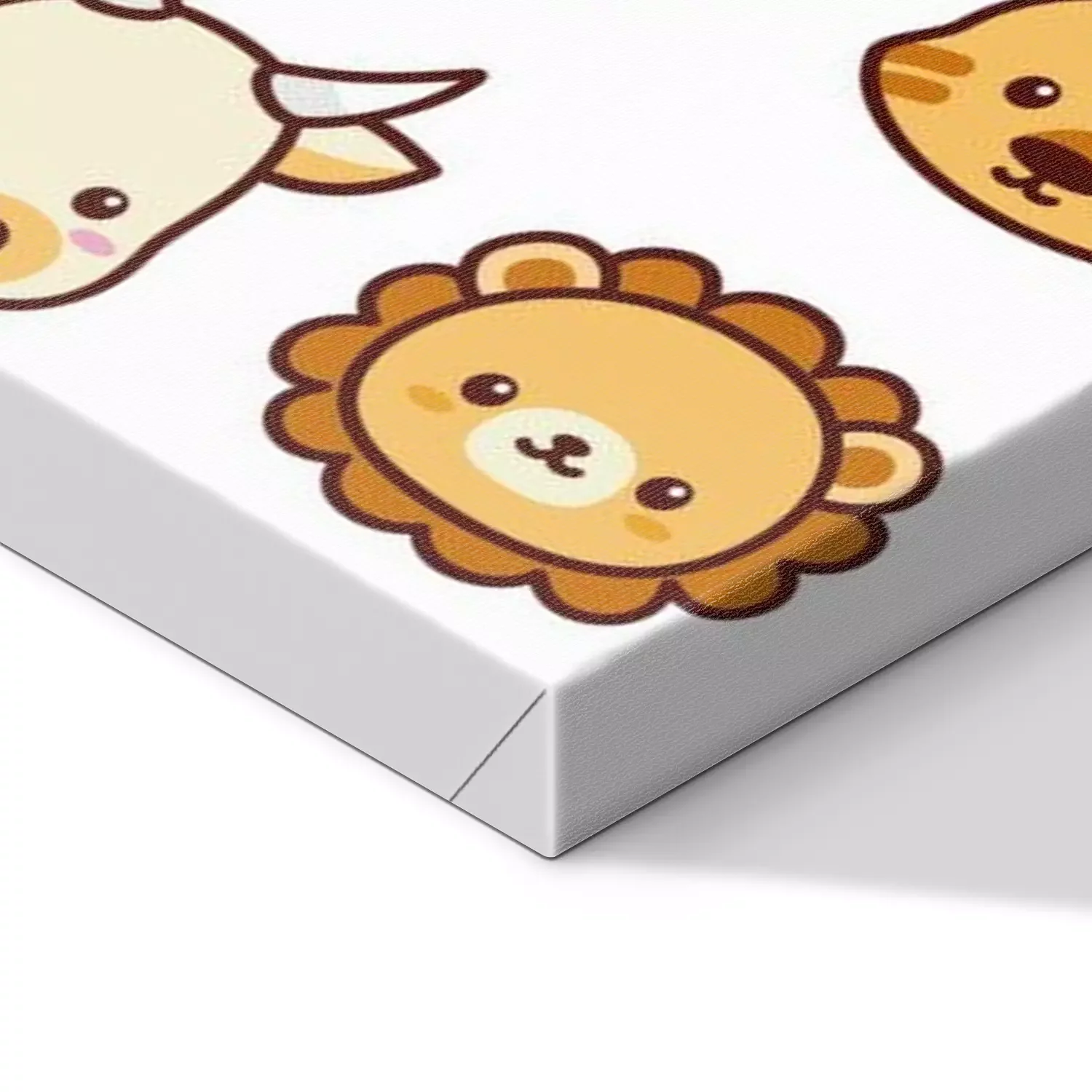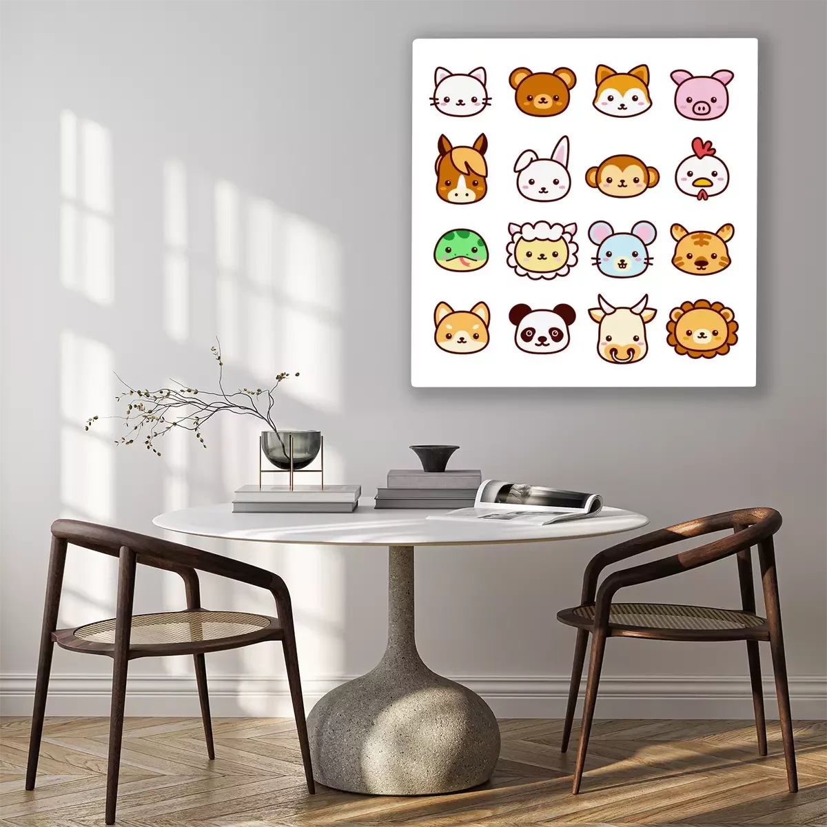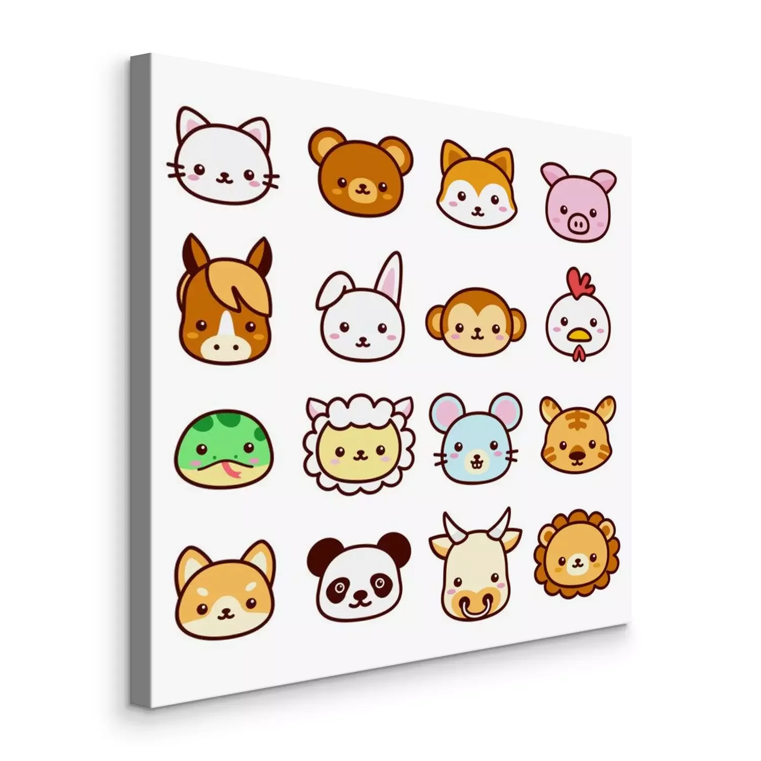 Canvas Set of cute and kawaii 16 animal signs. Flat cartoon vector isolated on white background.