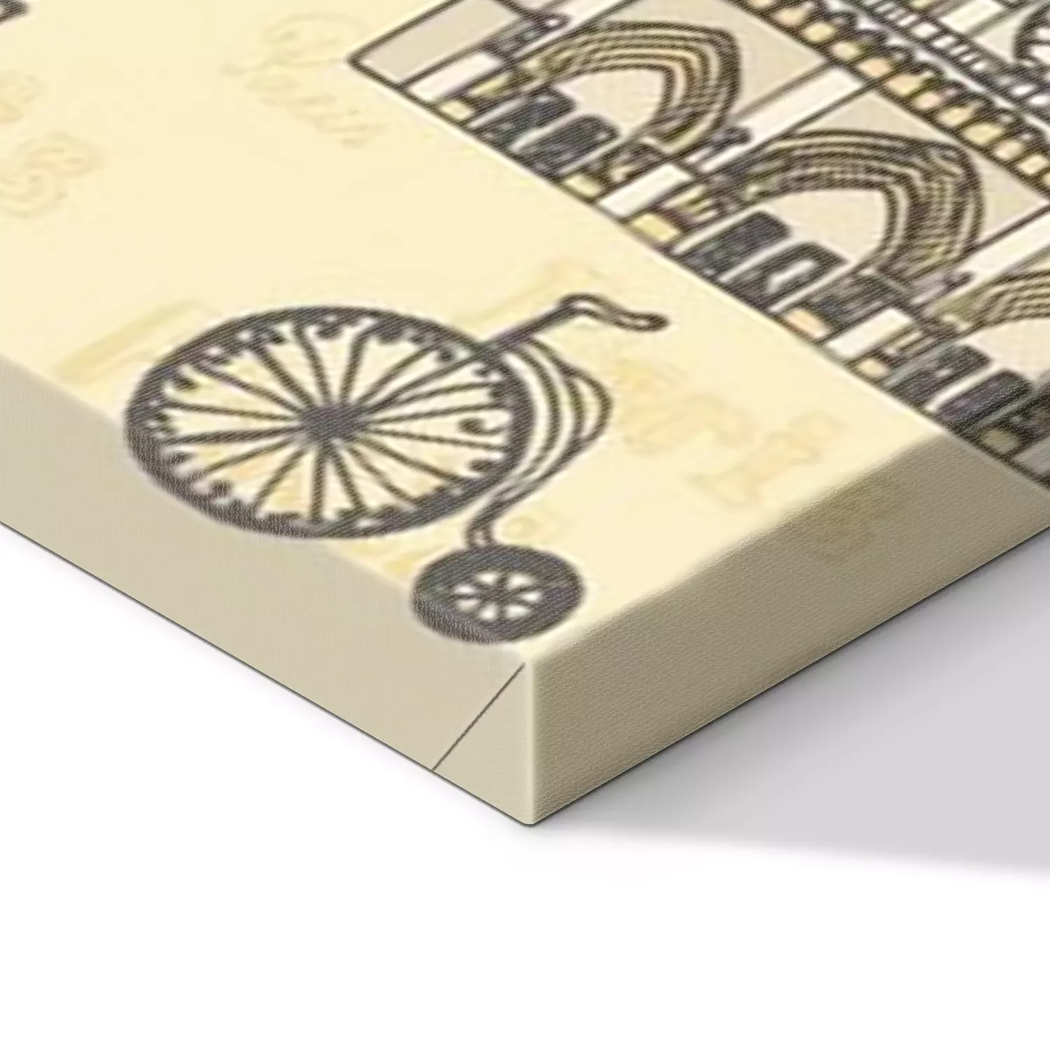 Canvas Set of Paris symbols made in vector. Eiffel tower, moulin rouge, Notre Dame De Paris, wine, cheese.