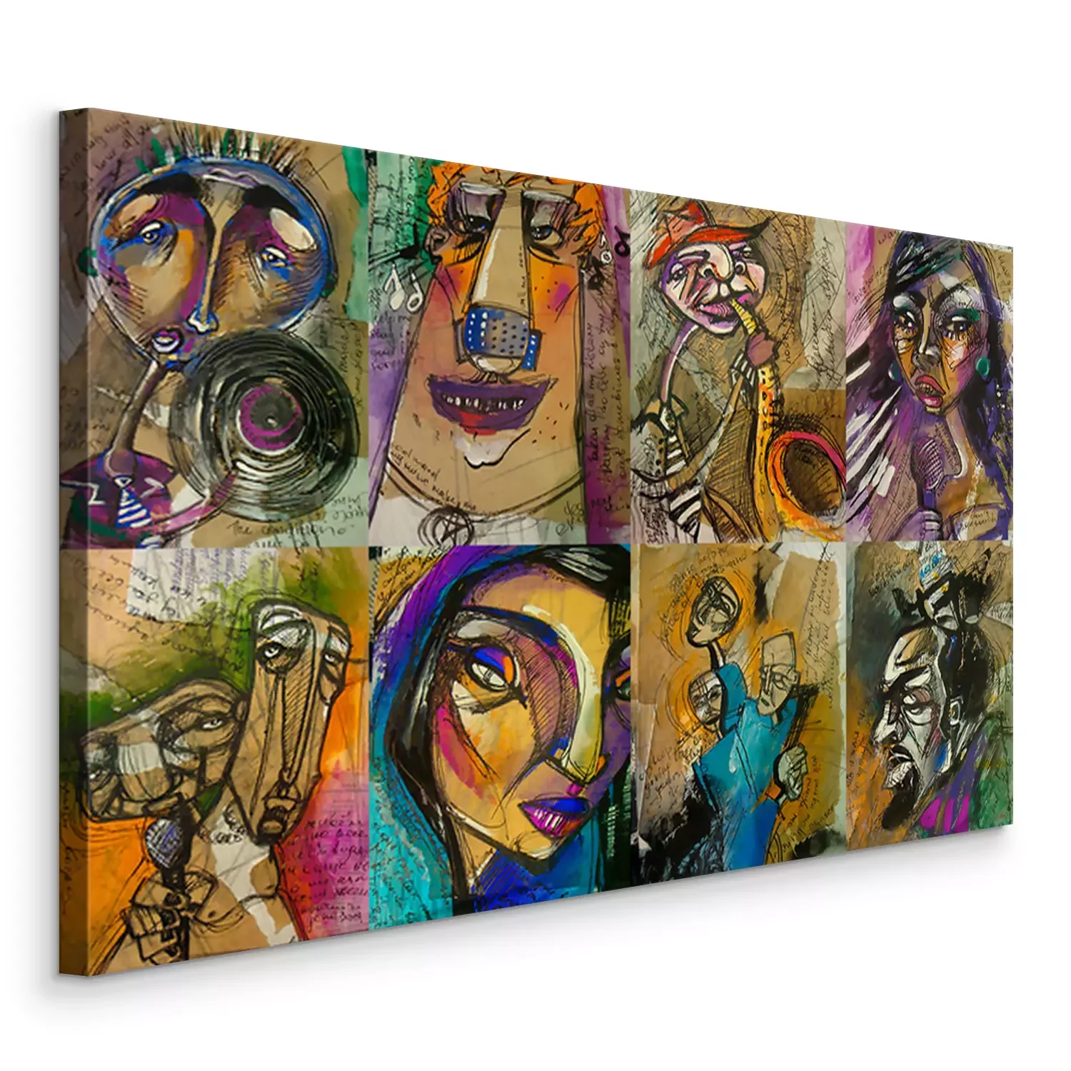 Canvas Set of poster, flyer or invitation templates for instrumental jazz music festival, event or concert with musical instruments, players and singers. Modern illustration in creative cartoon style.