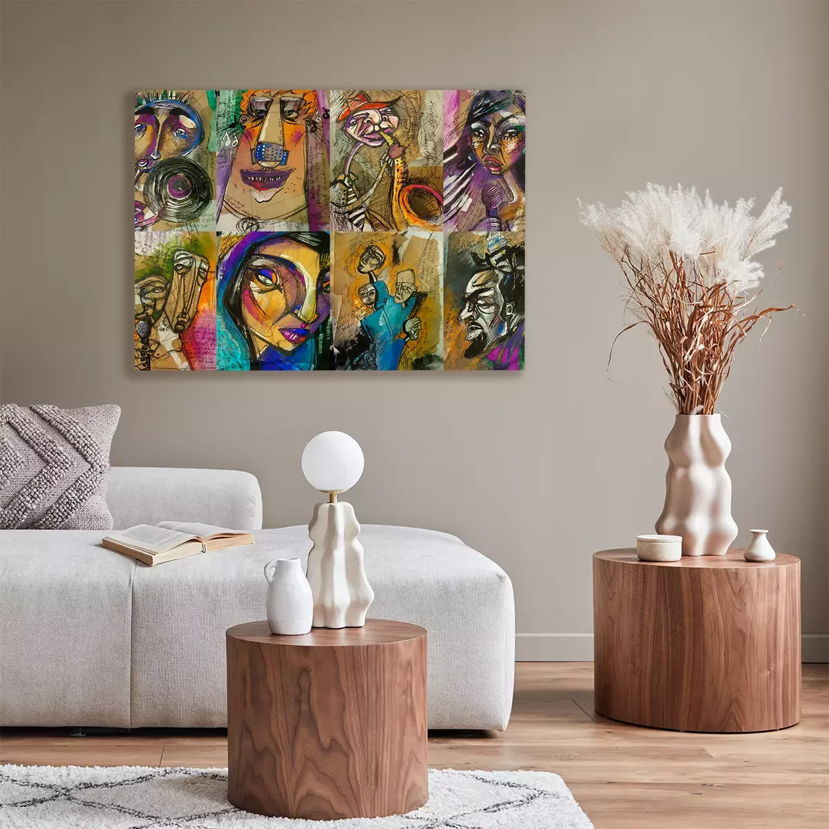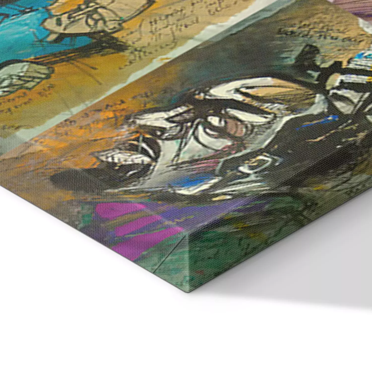 De print wordt aangebracht op hoogwaardig canvas dat op een schildersweefgetouw (spieraam) wordt gespannen. Omdat de print de zijranden bedekt, hoeft het ontwerp niet met een extra kader te worden omlijst. Wij raden ook composities aan die uit meerdere foto's bestaan en zo een coherente compositie vormen.