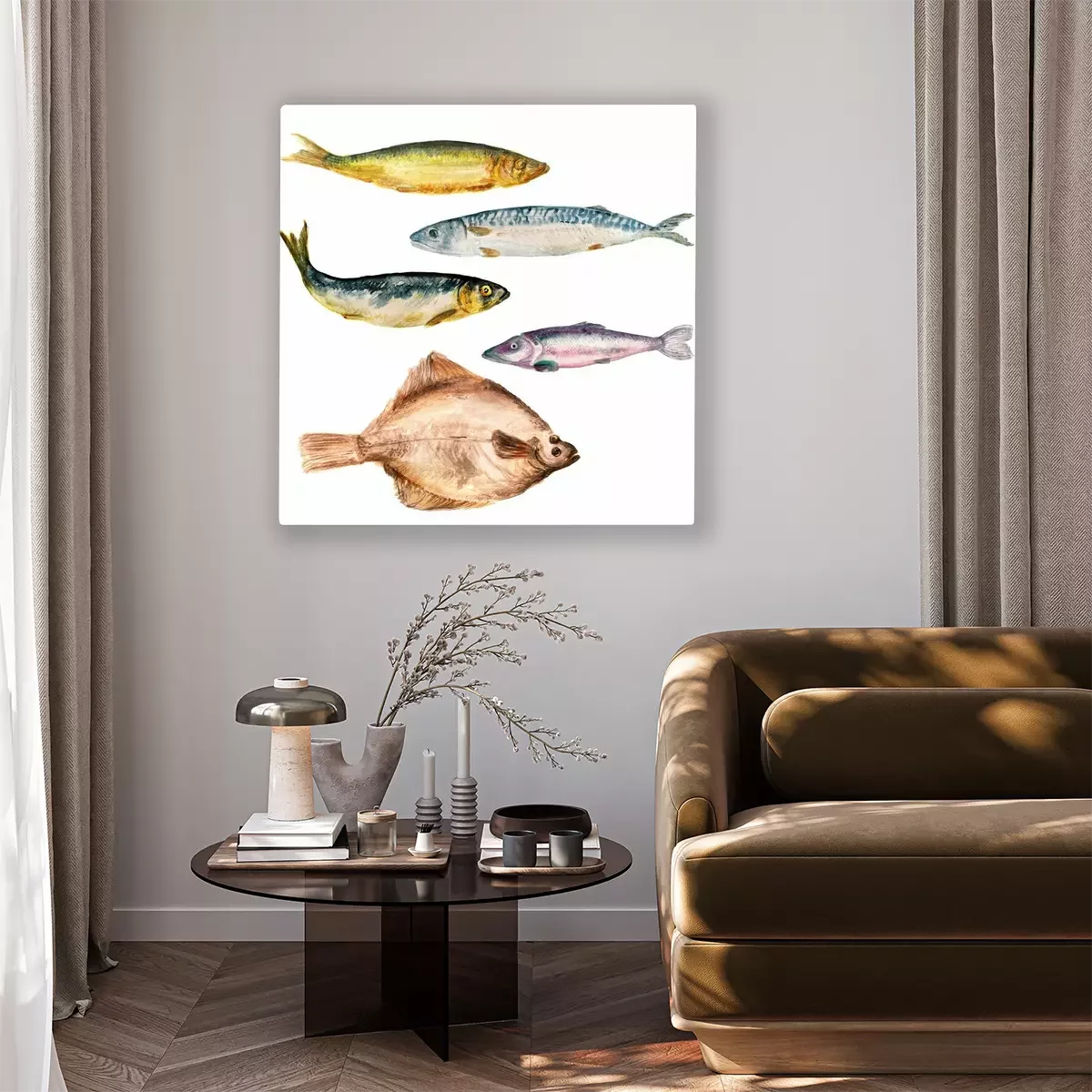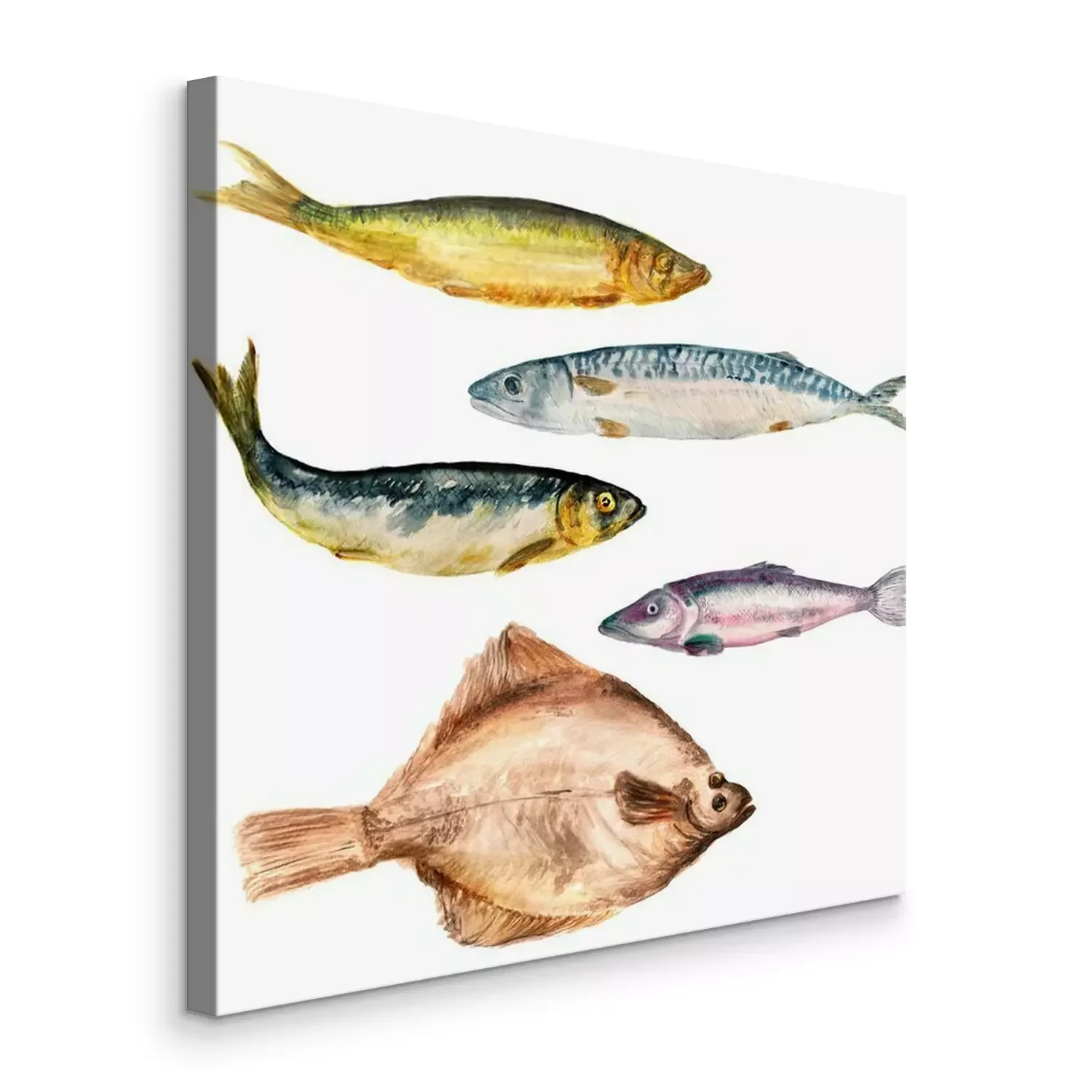 Canvas: Set van aquarel afbeeldingen van verschillende vissen