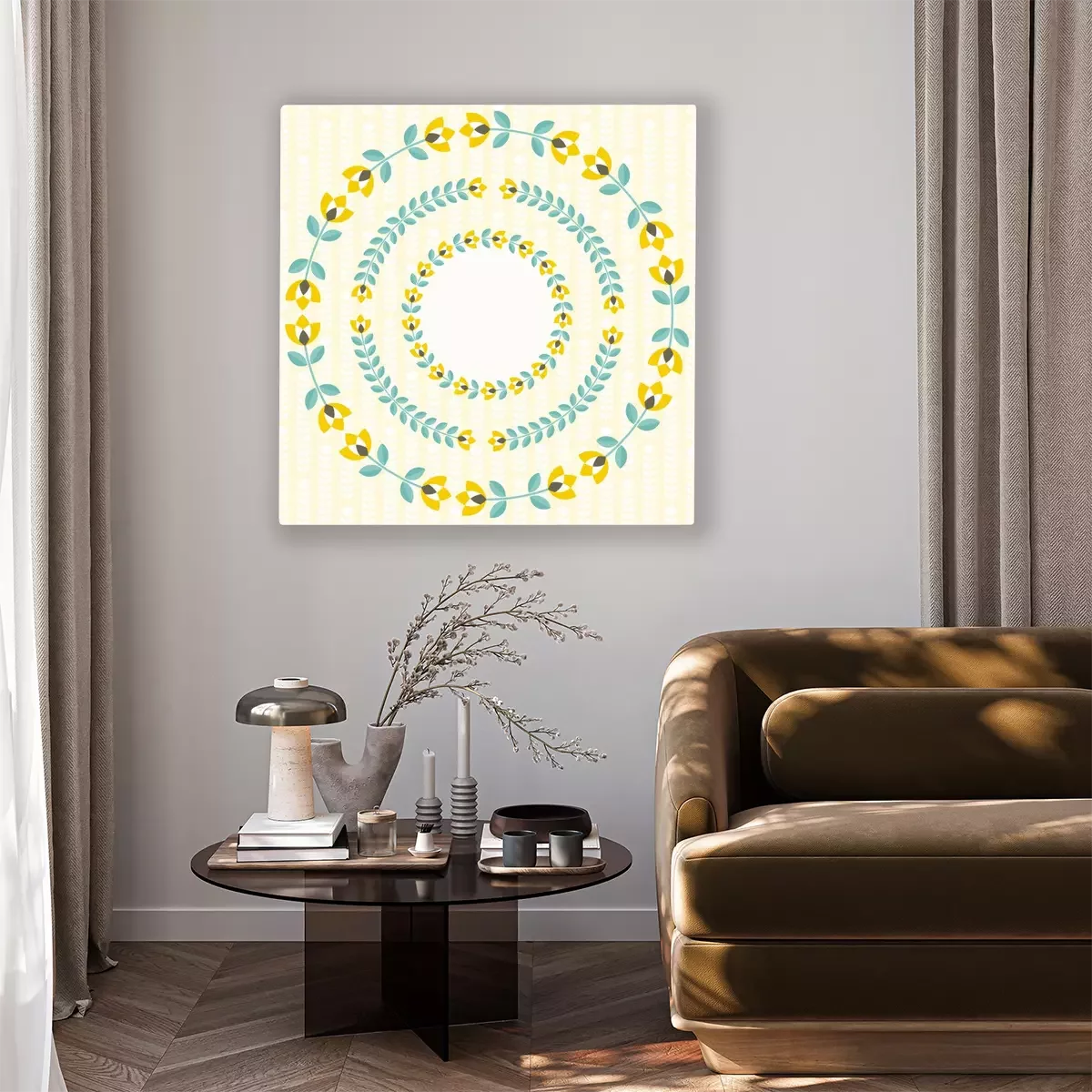 Scandinavische bloemen in een tint imitatie goud
