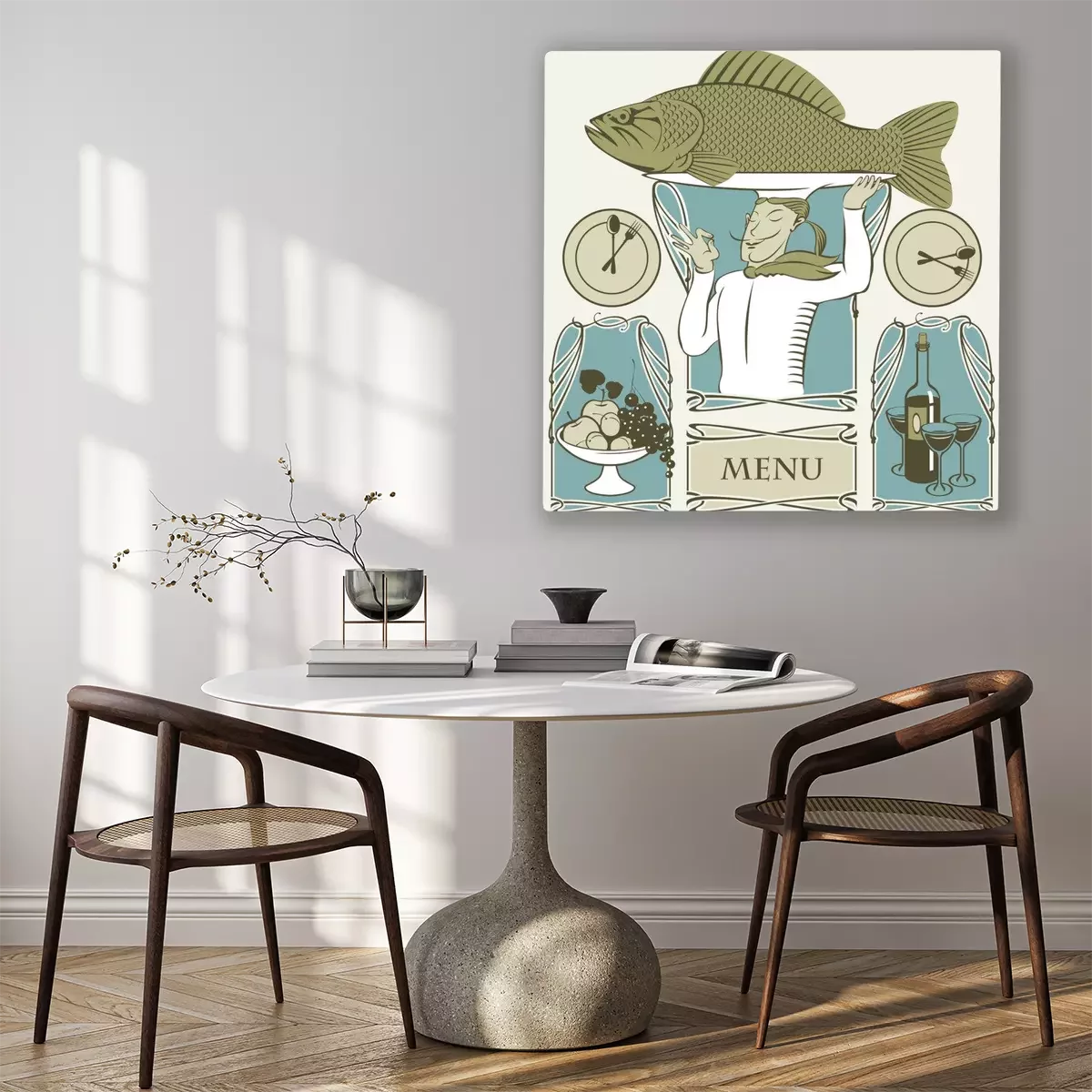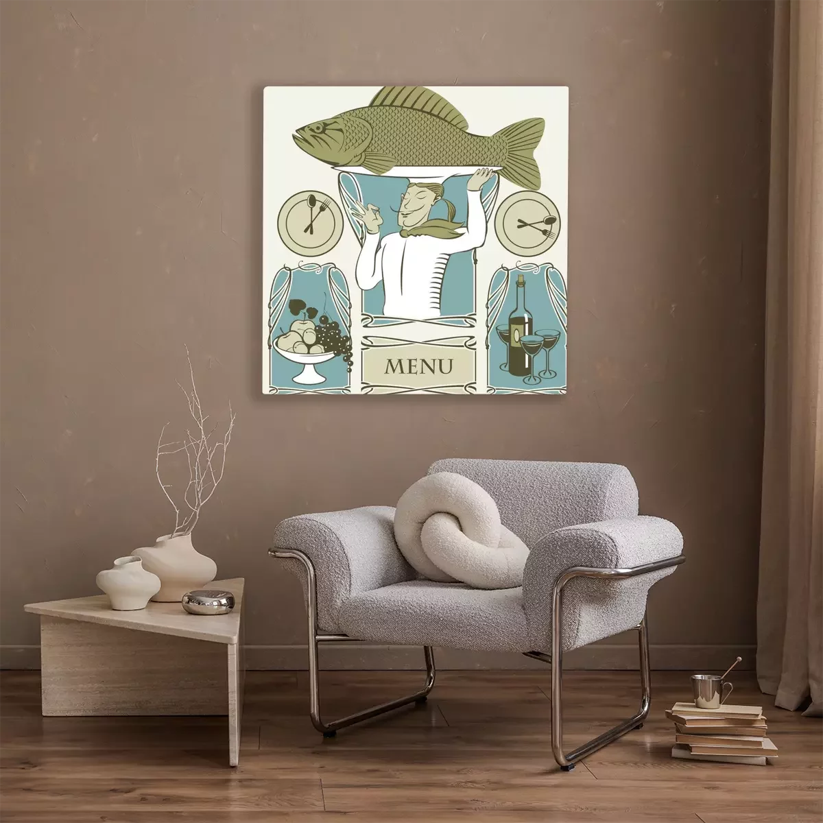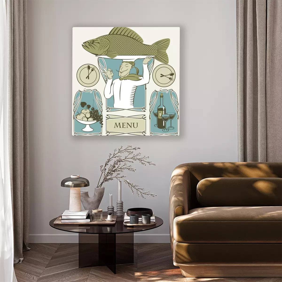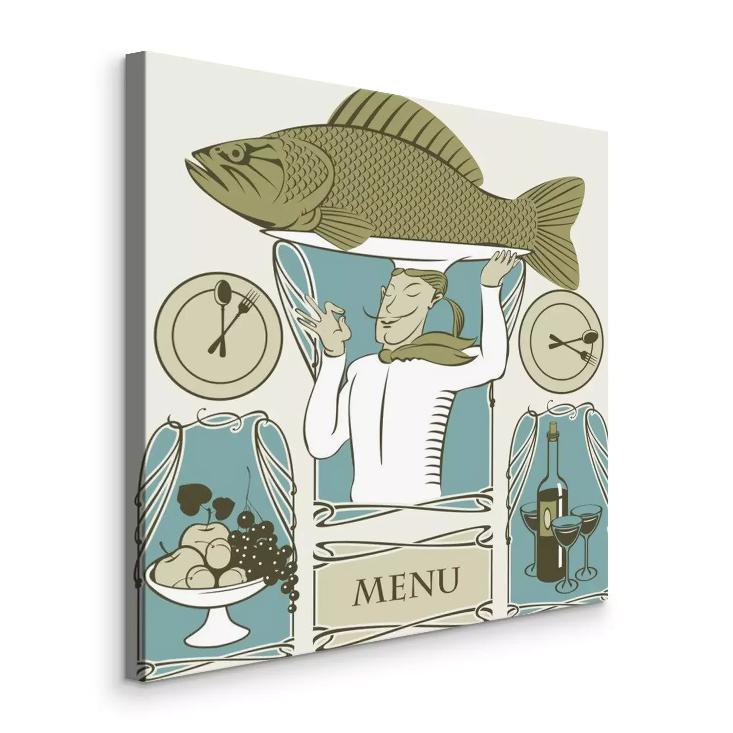 Canvas: set van kok vis op het hoofd en twee gerechten
