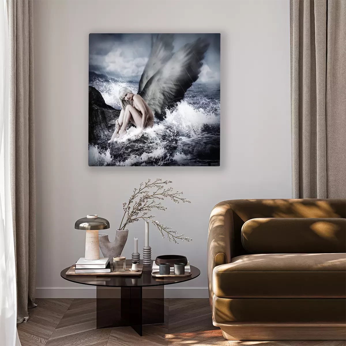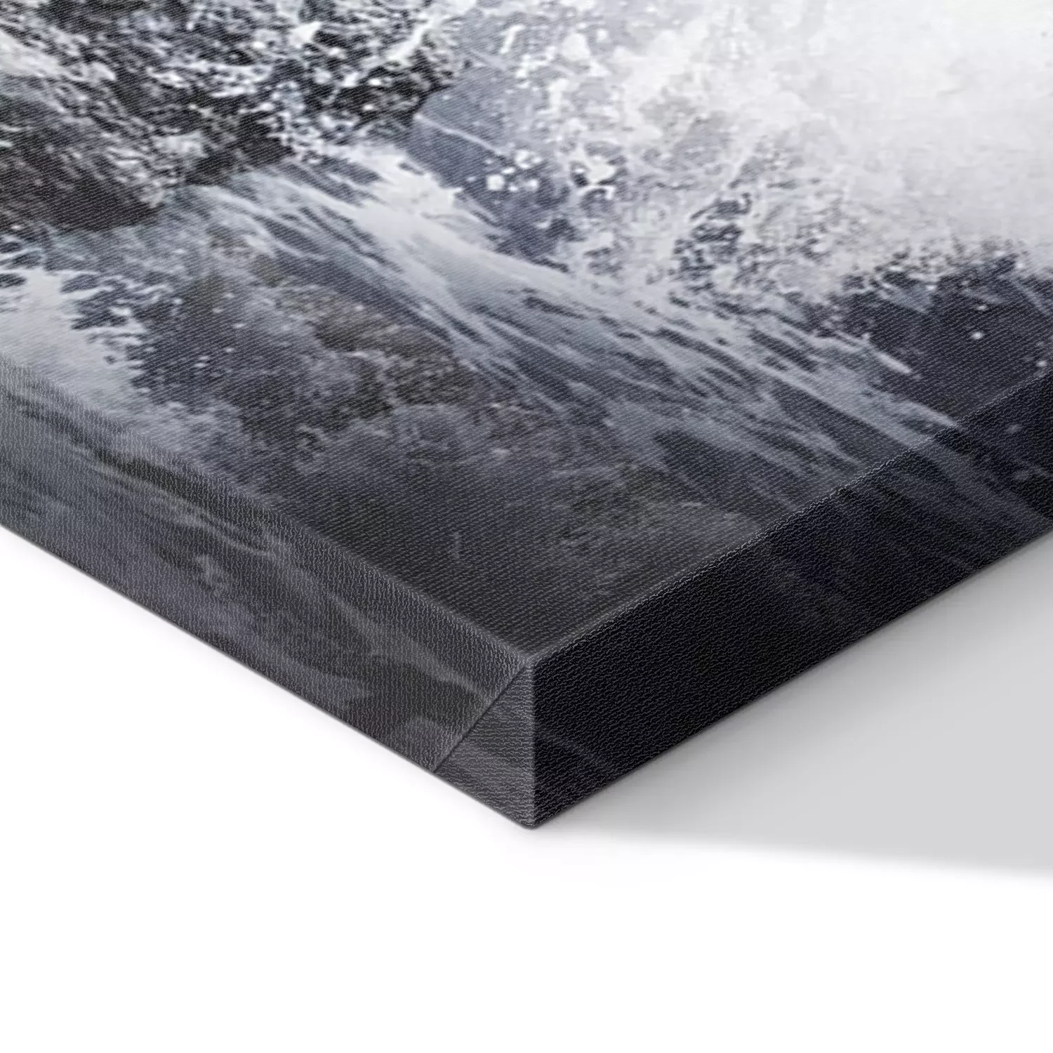 De print wordt aangebracht op hoogwaardig canvas dat op een schildersweefgetouw (spieraam) wordt gespannen. Omdat de print de zijranden bedekt, hoeft het ontwerp niet met een extra kader te worden omlijst. Wij raden ook composities aan die uit meerdere foto's bestaan en zo een coherente compositie vormen.