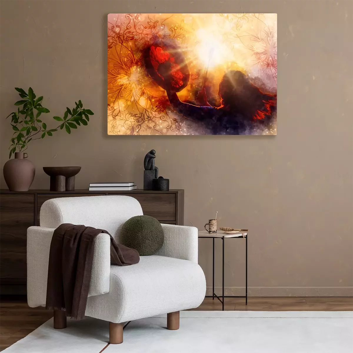 De print wordt aangebracht op hoogwaardig canvas dat op een schildersweefgetouw (spieraam) wordt gespannen. Omdat de print de zijranden bedekt, hoeft het ontwerp niet met een extra kader te worden omlijst. Wij raden ook composities aan die uit meerdere foto's bestaan en zo een coherente compositie vormen.