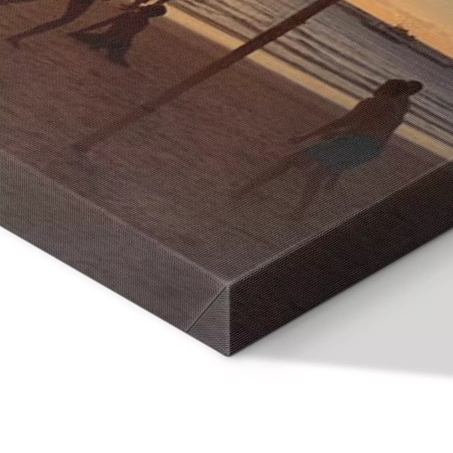 De print wordt aangebracht op hoogwaardig canvas dat op een schildersweefgetouw (spieraam) wordt gespannen. Omdat de print de zijranden bedekt, hoeft het ontwerp niet met een extra kader te worden omlijst. Wij raden ook composities aan die uit meerdere foto's bestaan en zo een coherente compositie vormen.