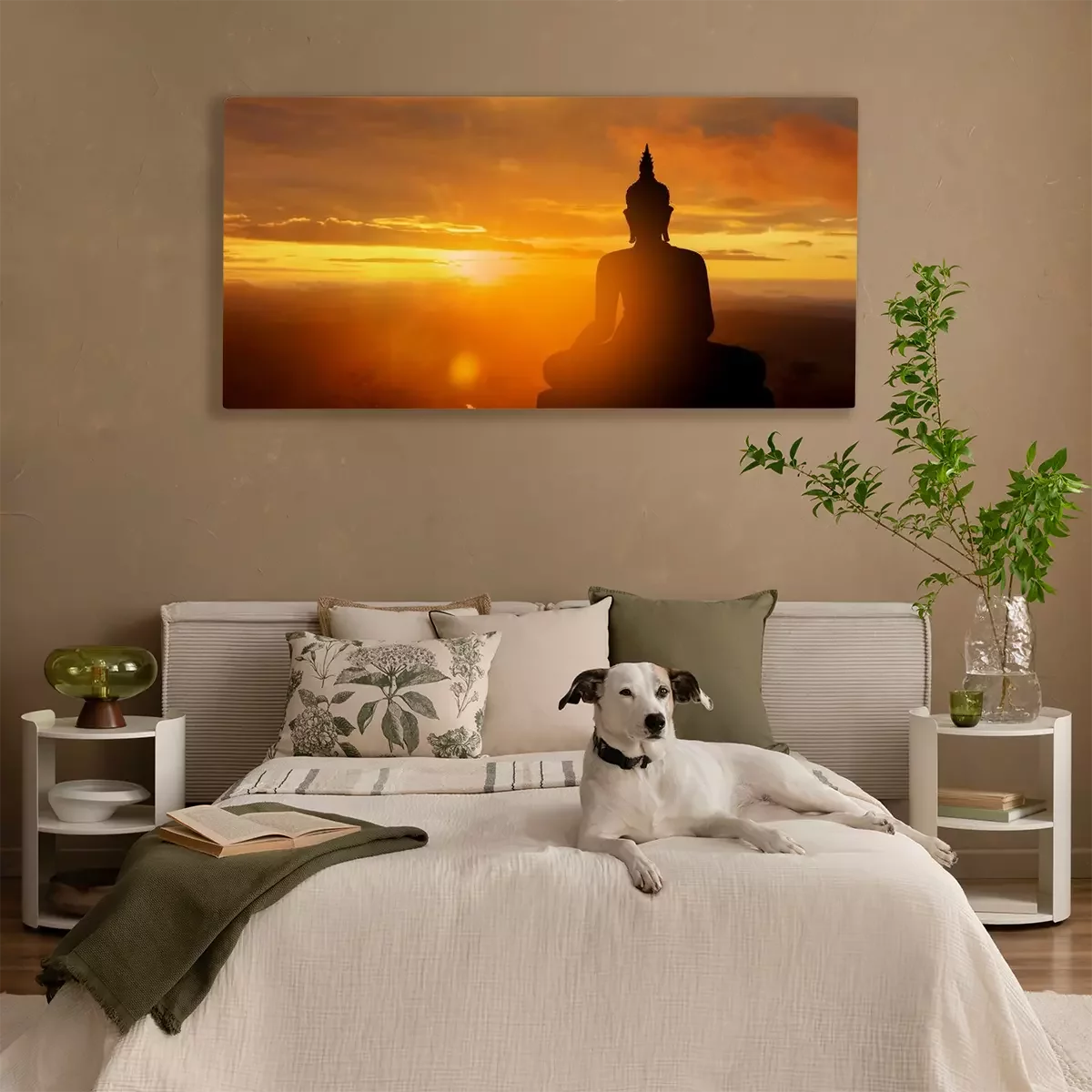 Canvas: Silhouet van Boeddha bij zonsondergang