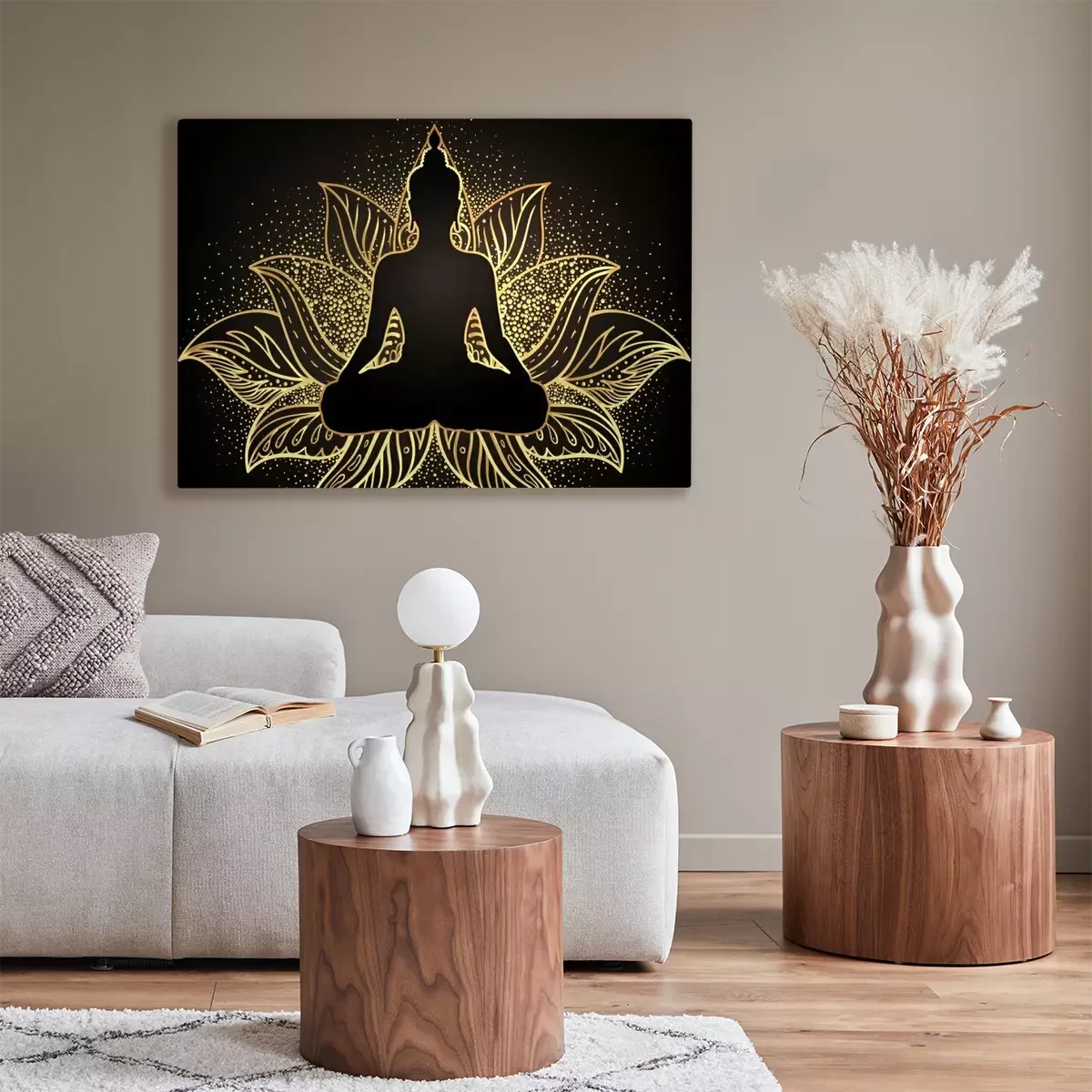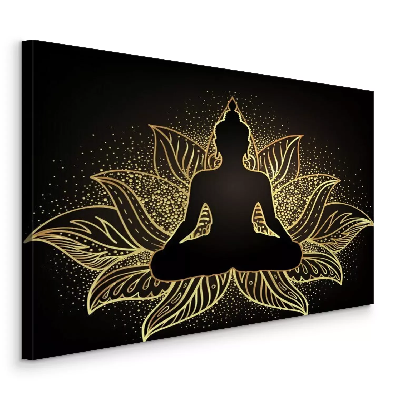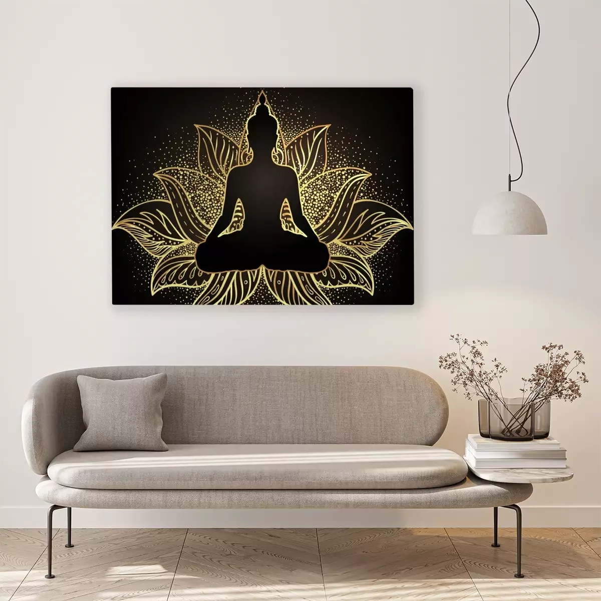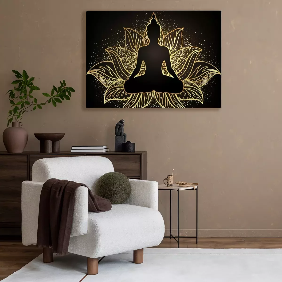 Canvas Silhouet van Boeddha in lotushouding op een achtergrond van mandala