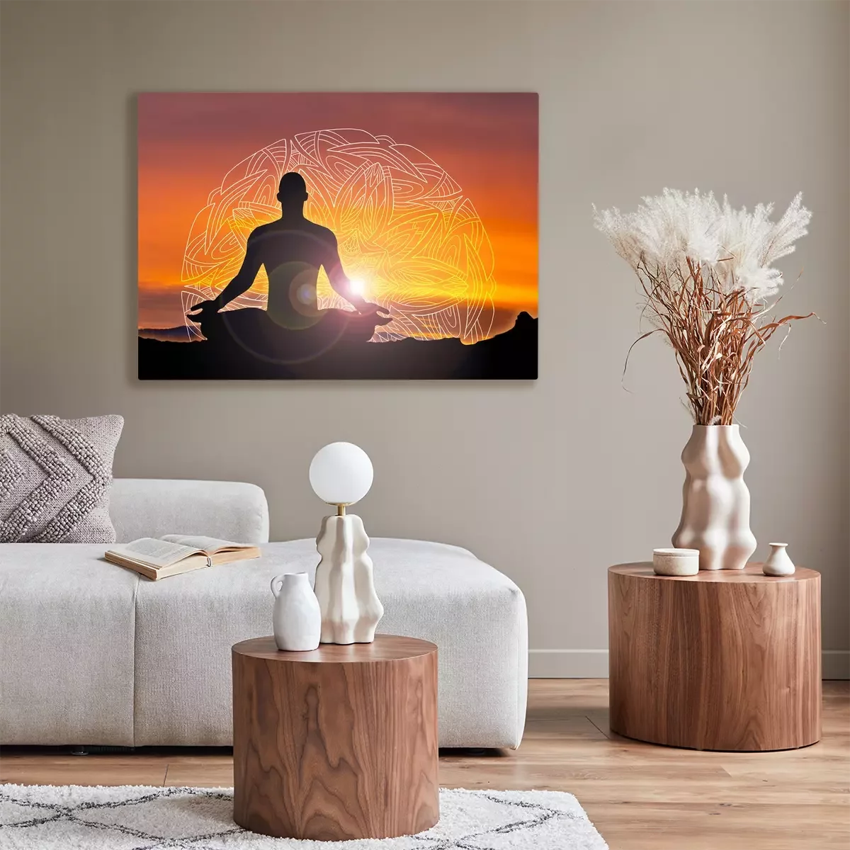 Canvas: Silhouet van een mediterende persoon tijdens het gouden uur