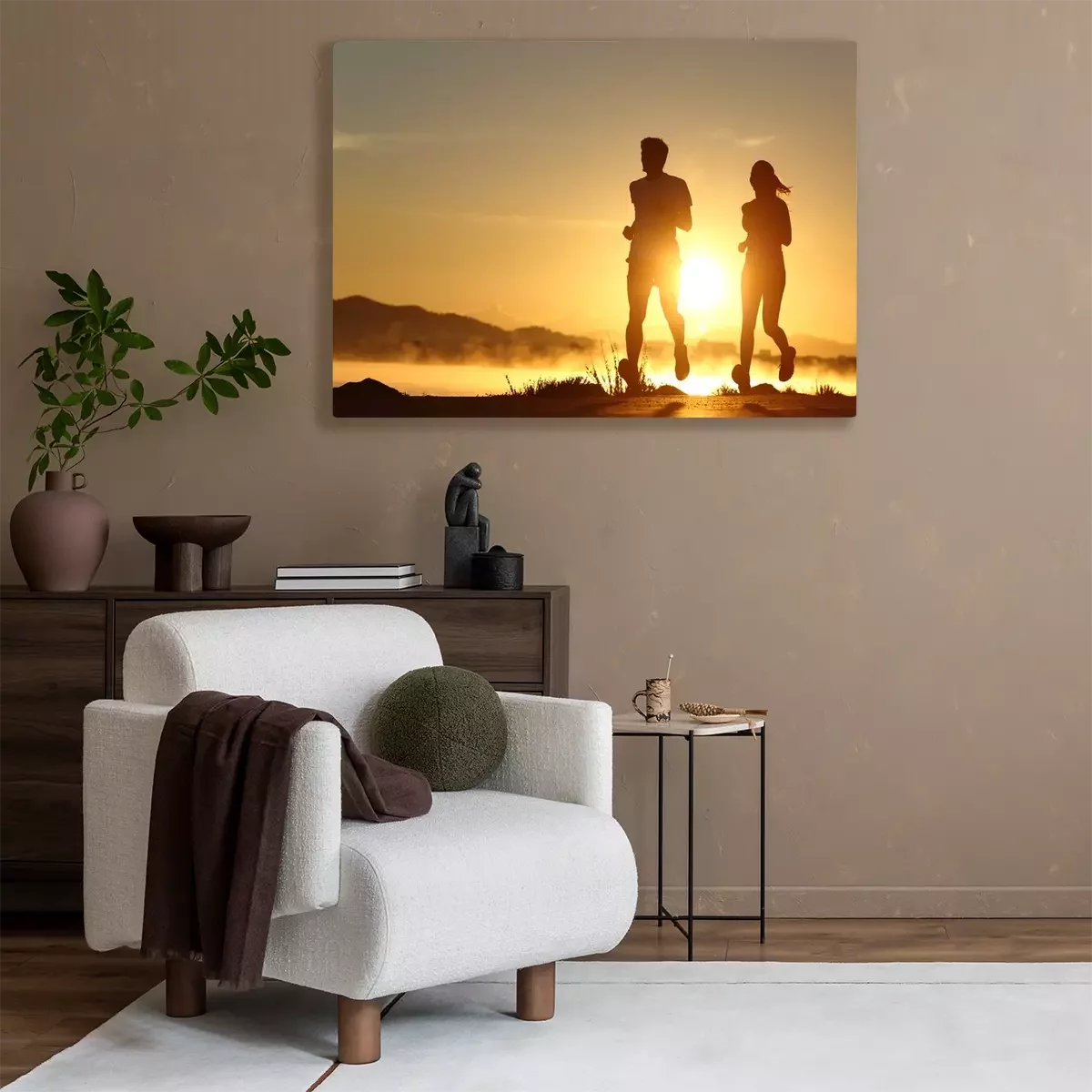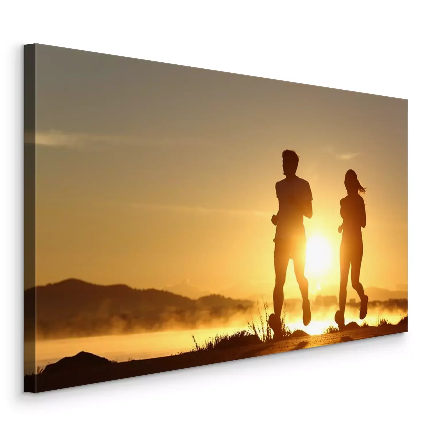 Canvas: Silhouet van een paar lopen bij zonsondergang
