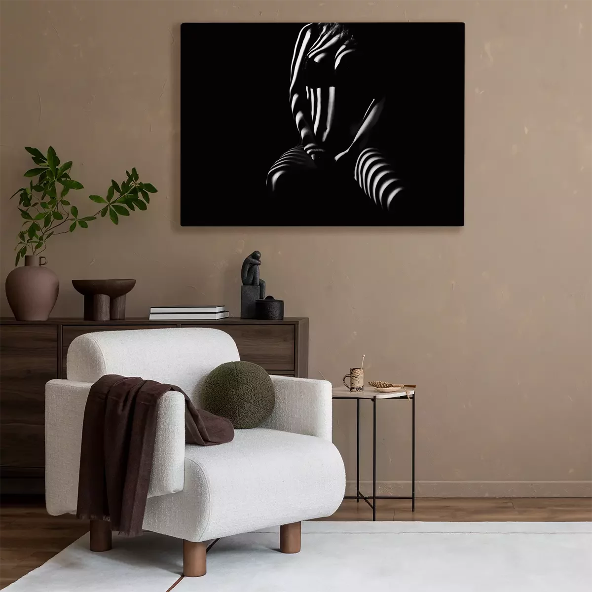 Silhouet van een vrouw met lichtlijnen op haar lichaam