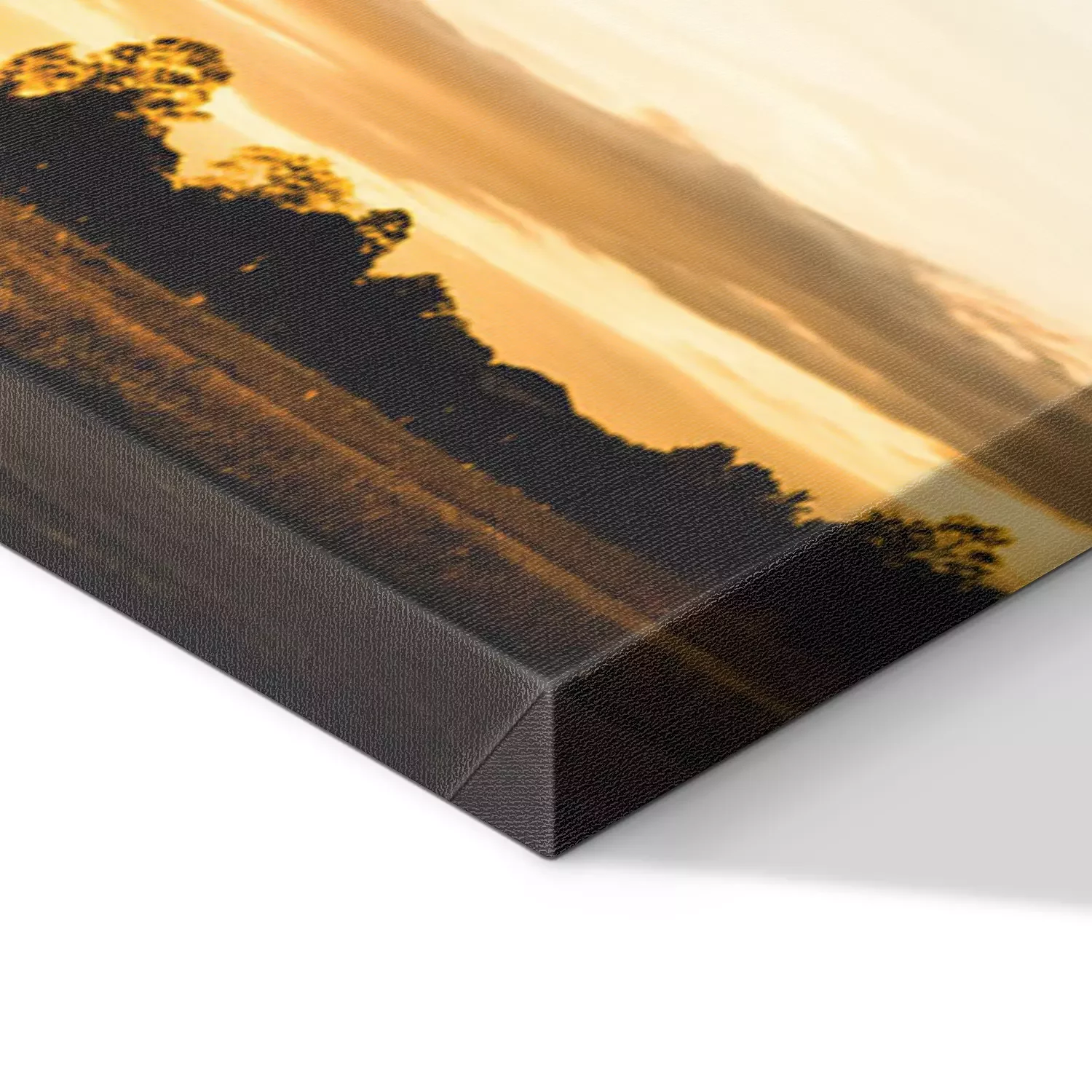 De print wordt aangebracht op hoogwaardig canvas dat op een schildersweefgetouw (spieraam) wordt gespannen. Omdat de print de zijranden bedekt, hoeft het ontwerp niet met een extra kader te worden omlijst. Wij raden ook composities aan die uit meerdere foto's bestaan en zo een coherente compositie vormen.