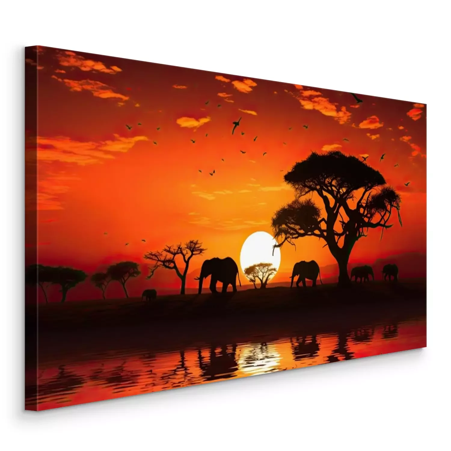 Canvas: Silhouetten van olifanten bij zonsondergang